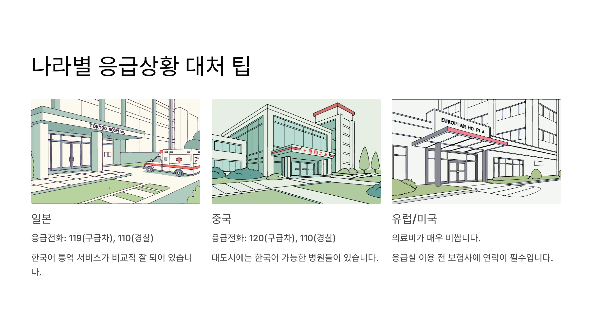 - 나라마다 응급전화가 다름 (태국 1669, 베트남 115 등)