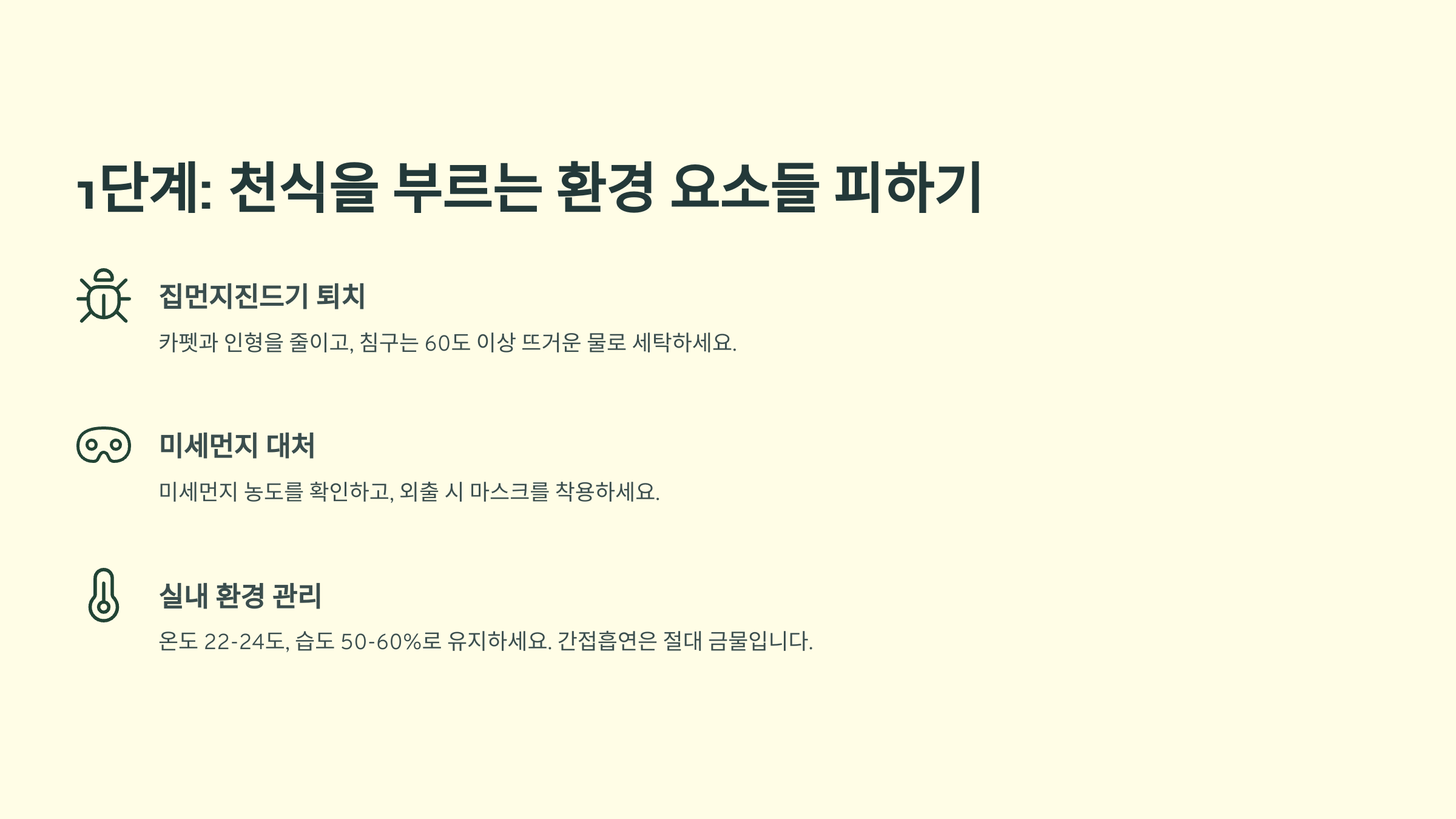 천식을 일으키는 주범들을 미리 차단하는 게 가장 중요해요. 약을 먹는 것보다도 더 효과적일 수 있거든요!