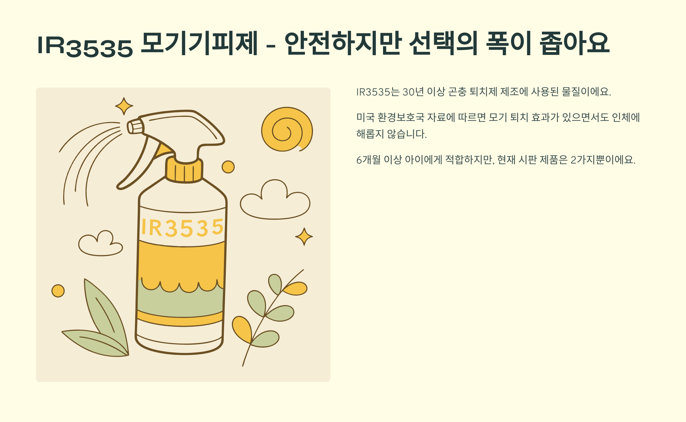 IR3535 모기기피제 - 안전하지만 선택의 폭이 좁아요