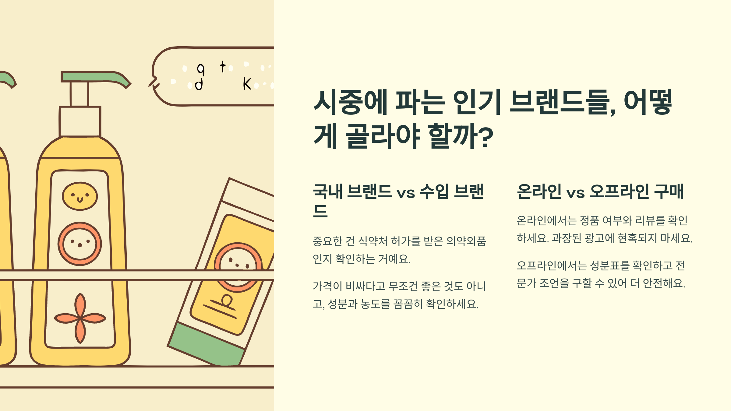 온라인에서 구매할 때는 정품 여부를 꼼꼼히 확인하고, 리뷰를 참고하되 과장된 광고에 현혹되지 않도록 주의하세요. 오프라인 매장에서는 직접 성분표를 확인하고 약사나 전문가의 조언을 구할 수 있어서 더 안전해요.