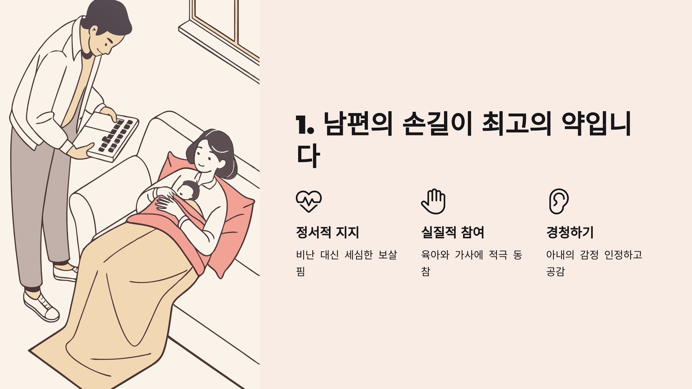 - 실질적으로 육아와 가사에 참여해 아내의 부담을 덜어주세요