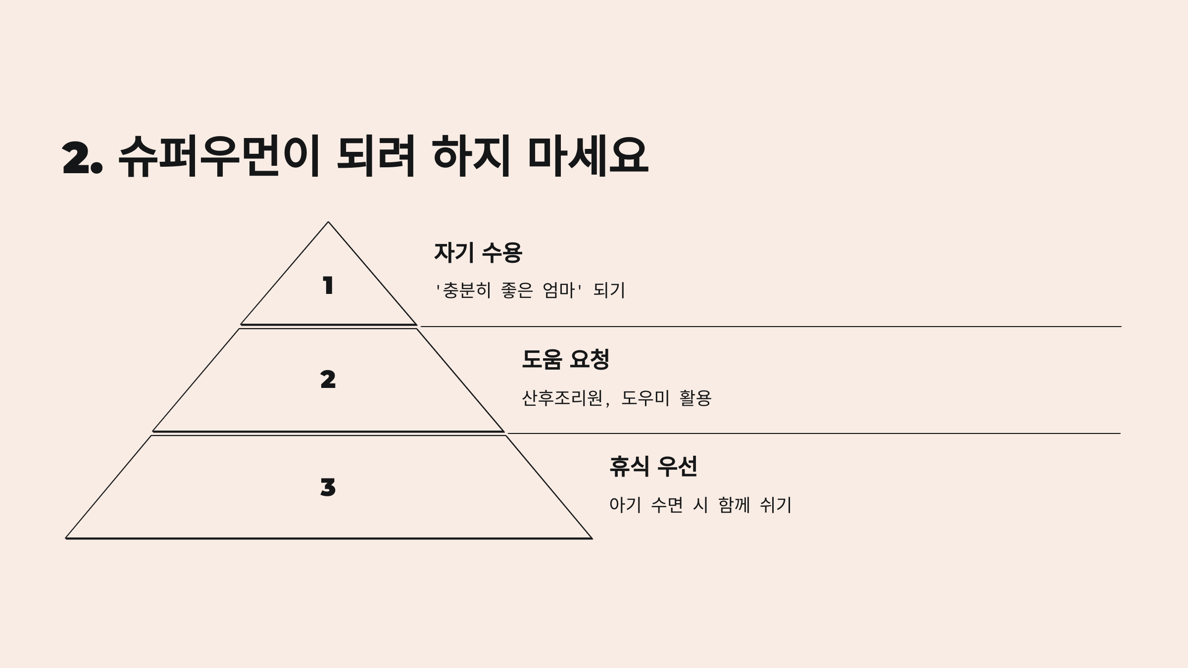 출산 직후는 자신의 회복에 집중해야 할 시간입니다. 집안일과 육아를 도와줄 수 있는 가족, 친구, 또는 전문 도우미의 도움을 주저하지 말고 요청하세요.