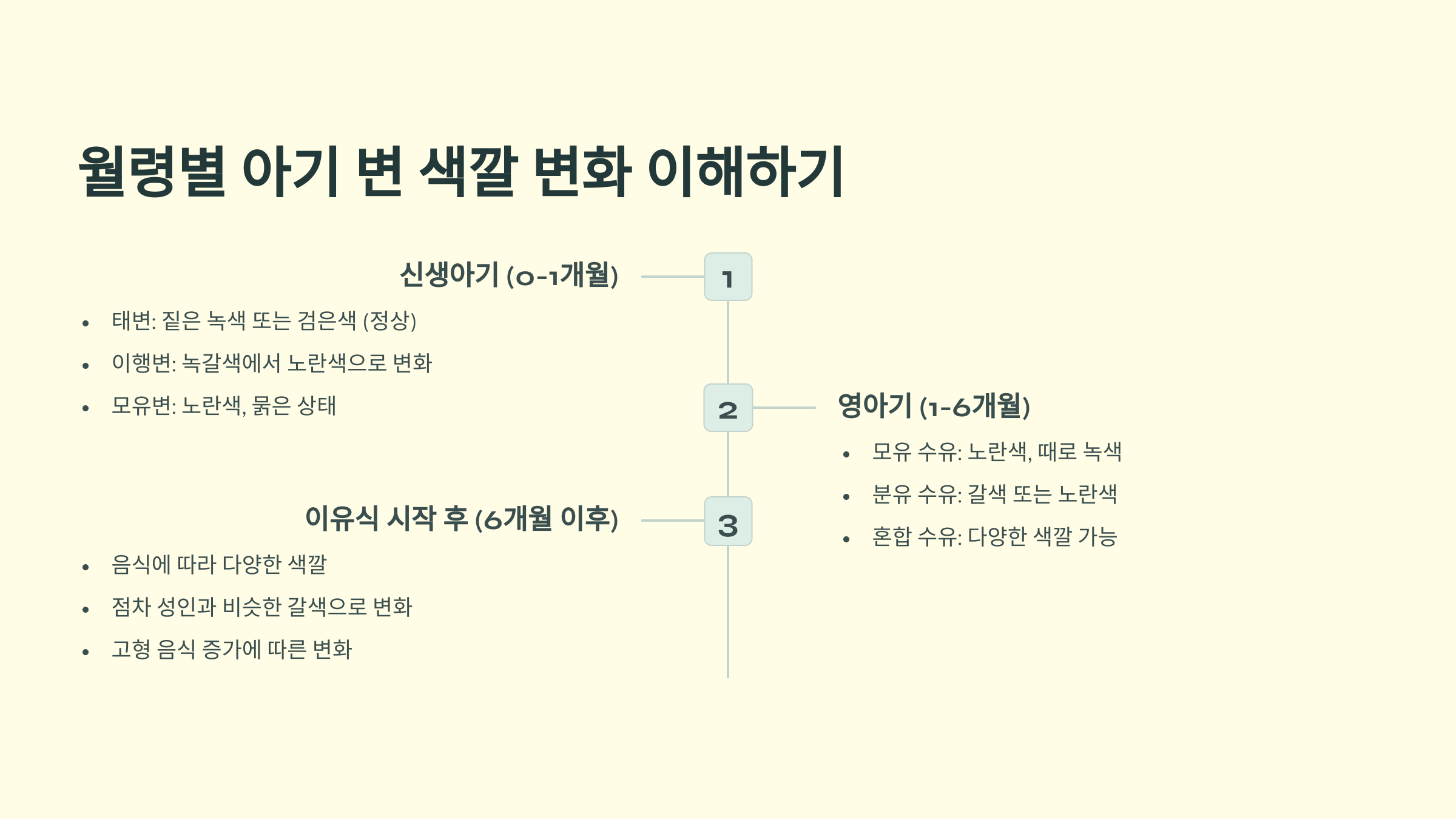 - 녹색: 음식이나 모유 성분에 따라 나타나는 정상 변화