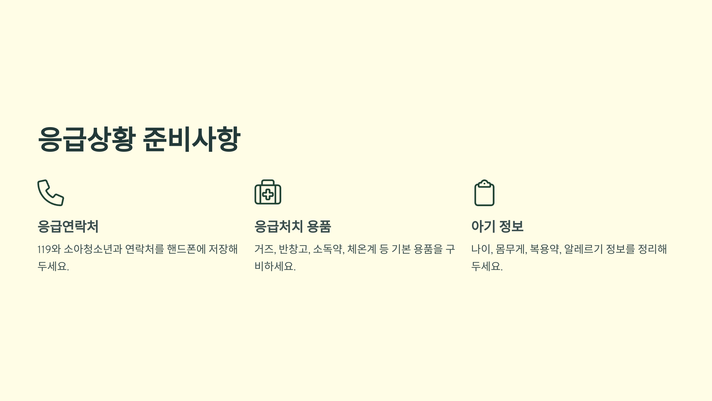 응급상황 시 연락처와 준비사항