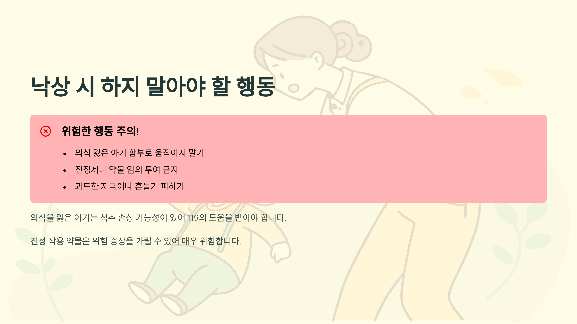 아기 침대 낙상 시 하지 말아야 할 행동들