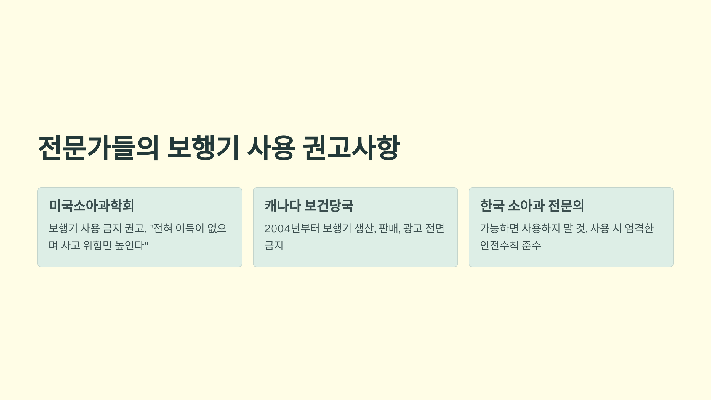 - 보행기 사용 금지 권고