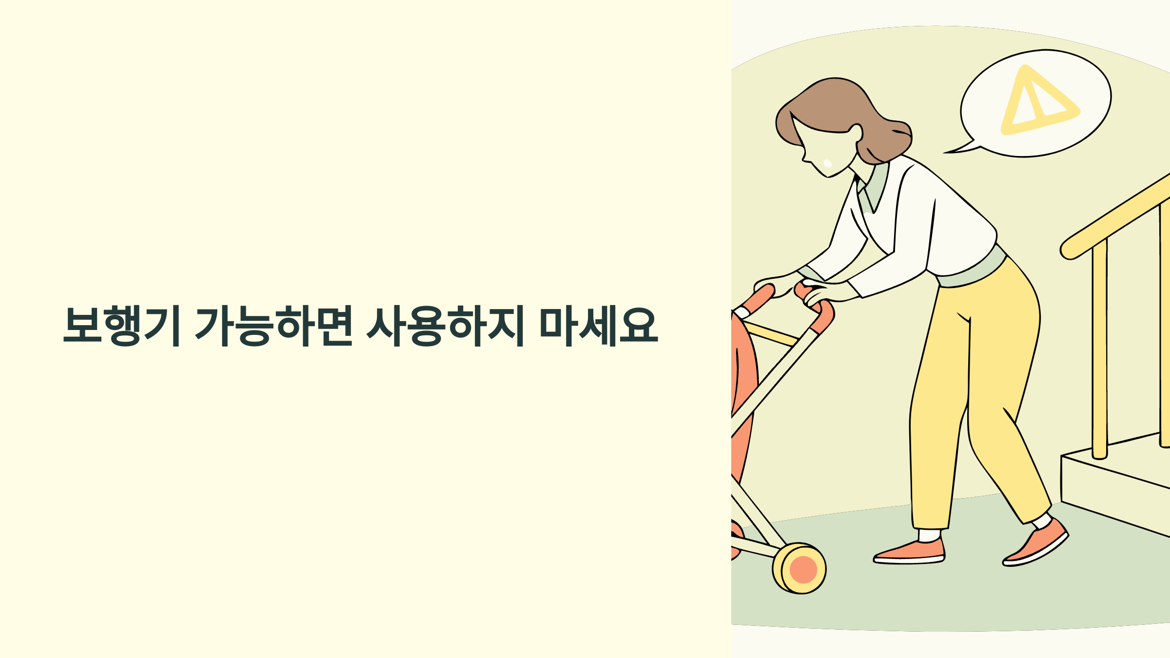 만약 어쩔 수 없이 보행기를 사용해야 한다면, 이 안전수칙들은 꼭 지켜주세요.