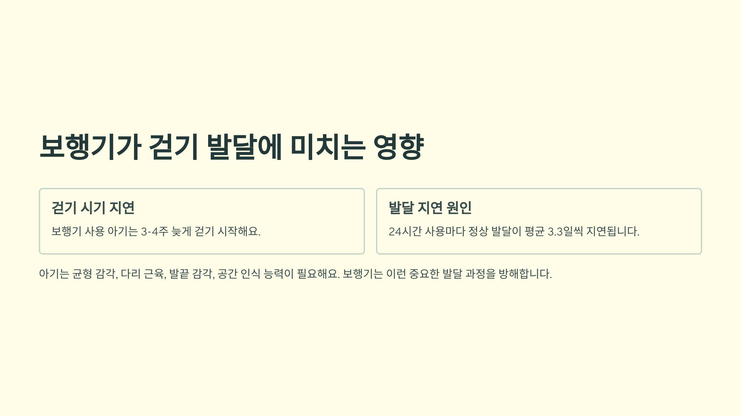 오해: "보행기를 쓰면 빨리 걸어요" 진실: 오히려 2-4주 늦어질 수 있어요