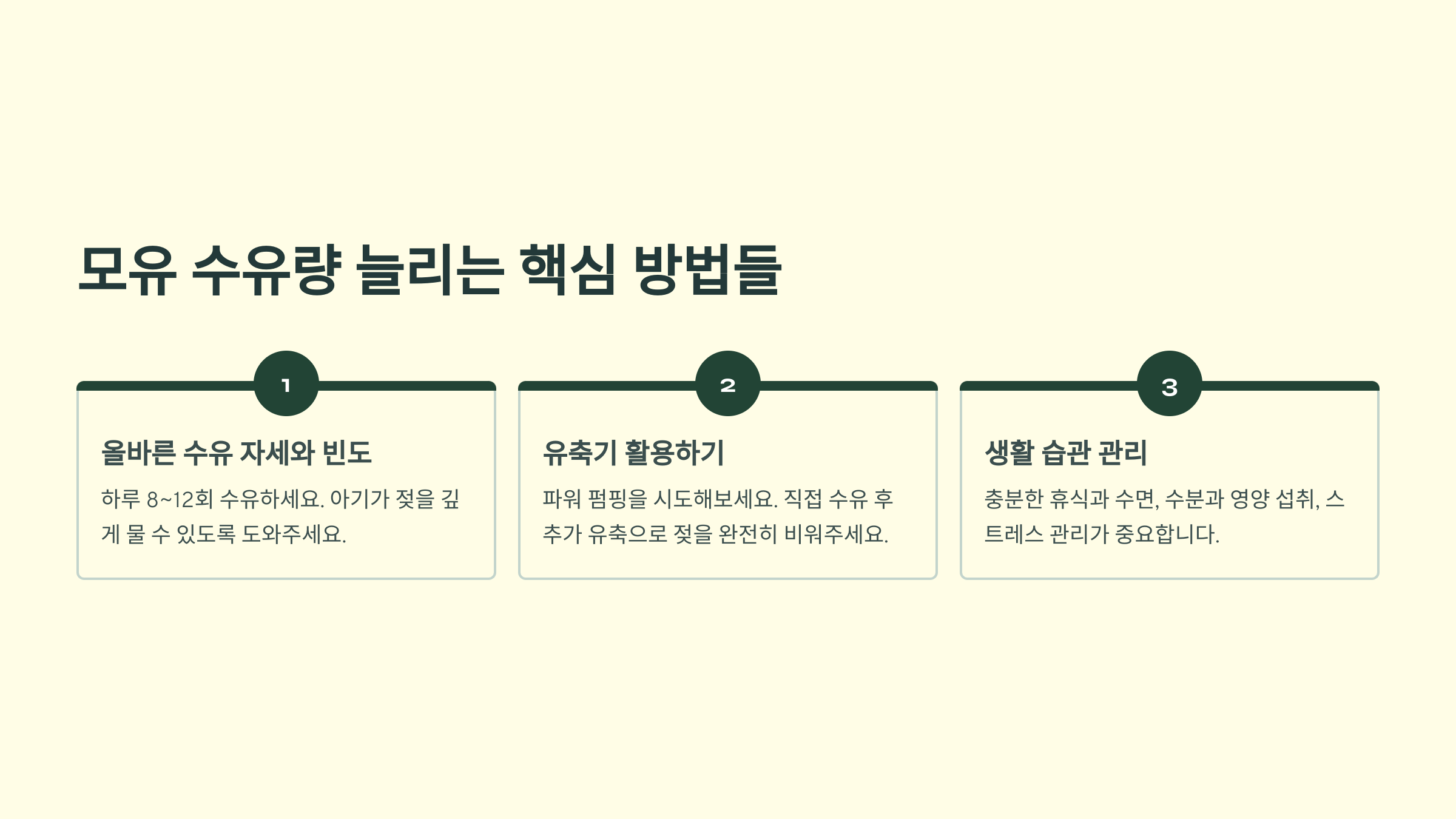 그래서 모유량을 늘리는 핵심은 다음 두 가지예요: