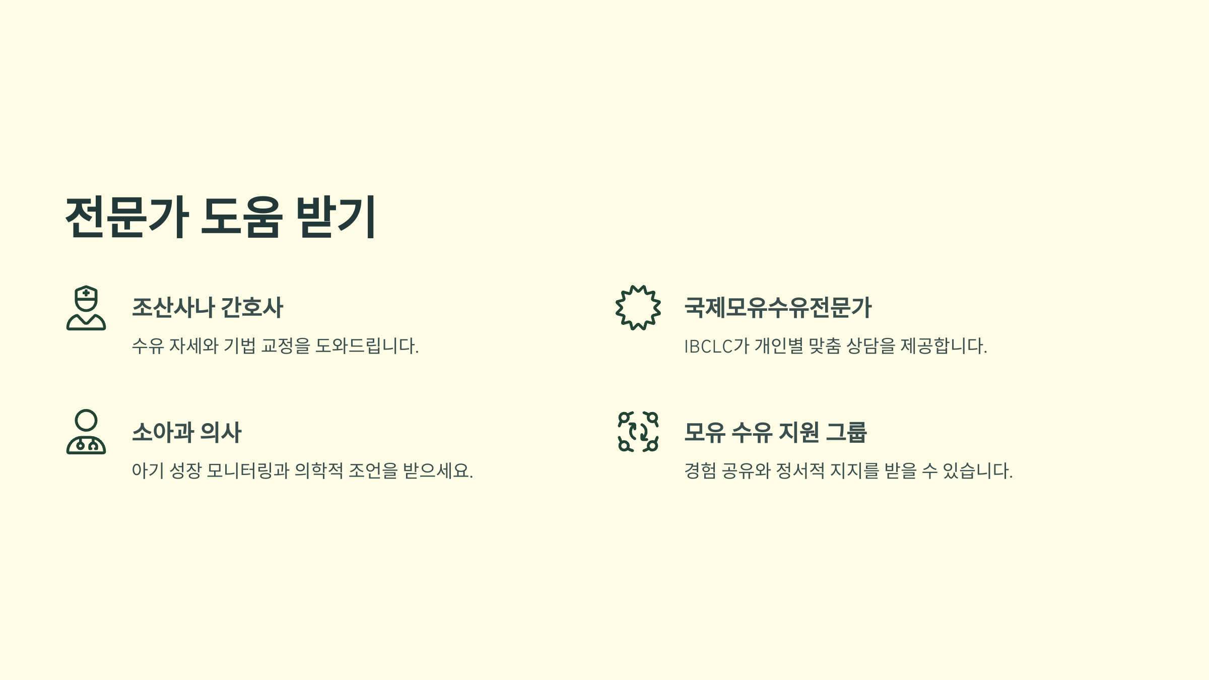 - 모유 수유 지원 그룹: 경험 공유와 정서적 지지
