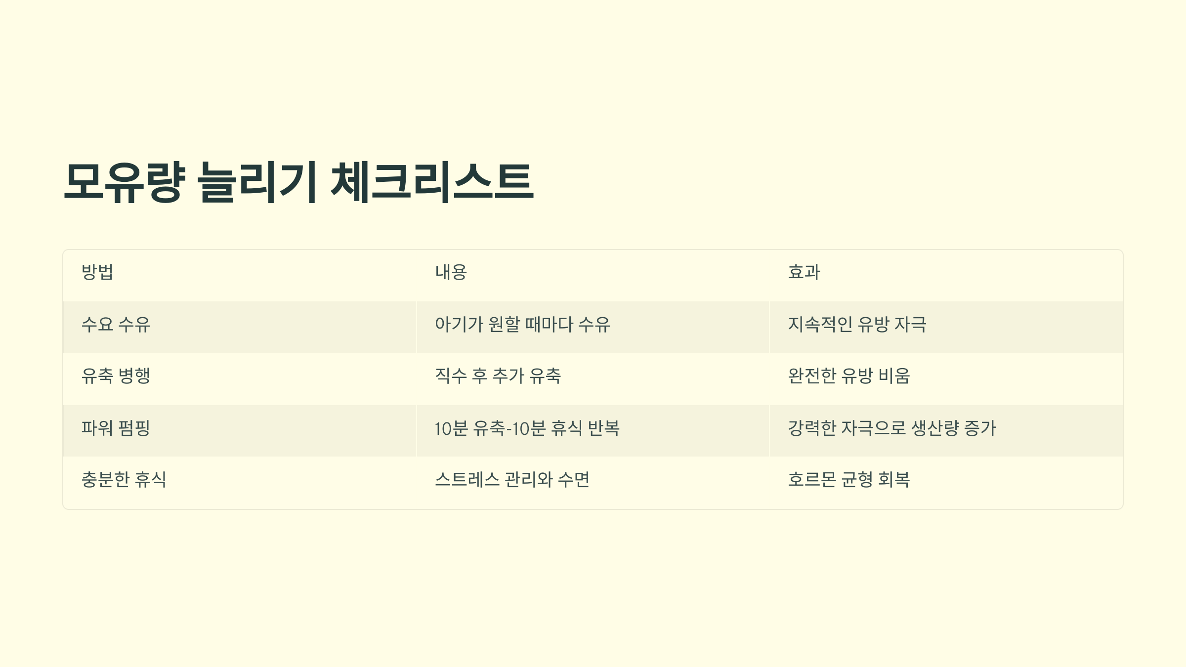 모유량 늘리기 체크리스트