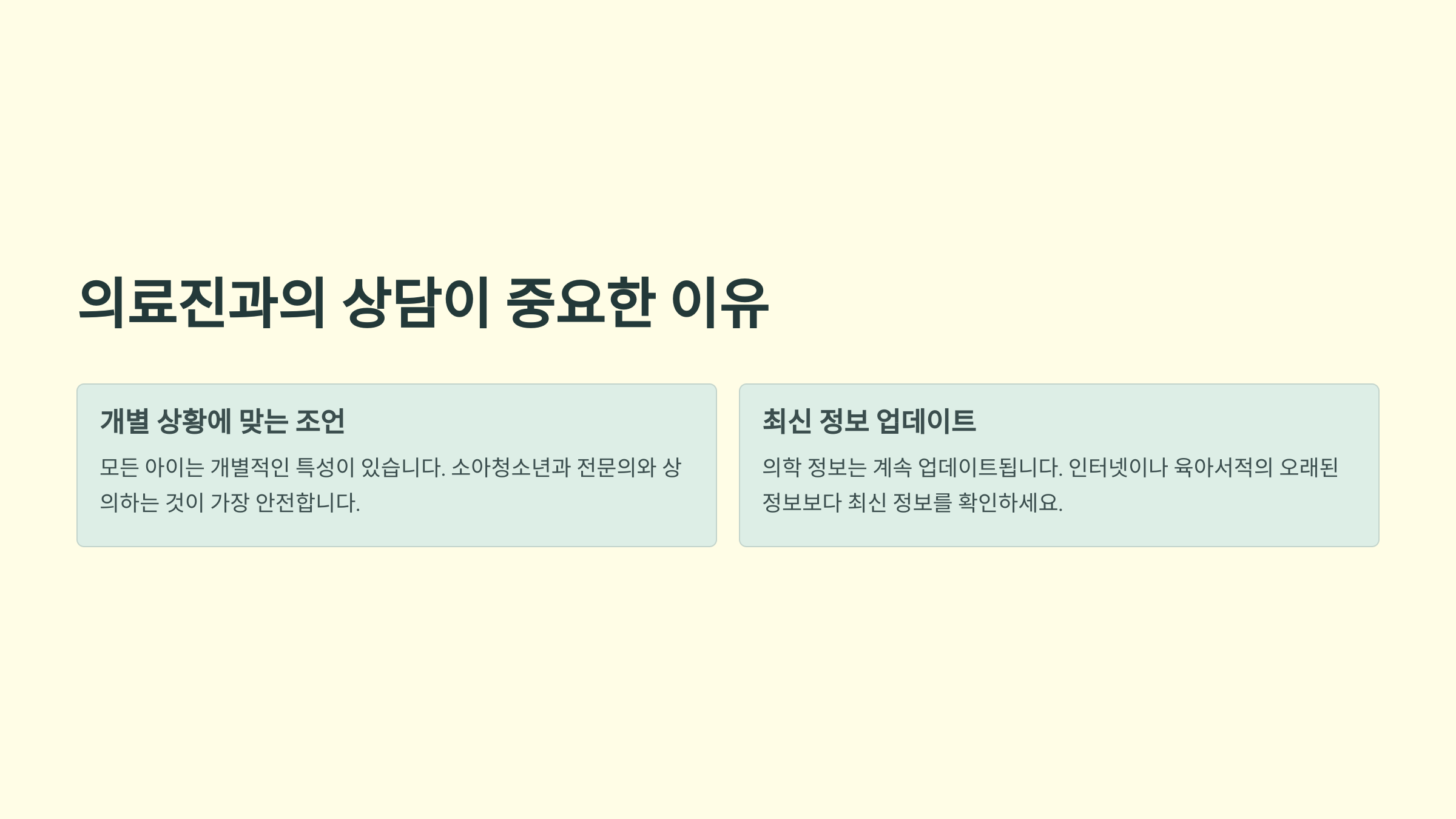 의학 정보는 계속해서 업데이트되고 있어요. 인터넷이나 육아서적의 정보 중에는 오래된 내용이 많으니, 항상 최신 정보를 확인하는 것이 중요해요.