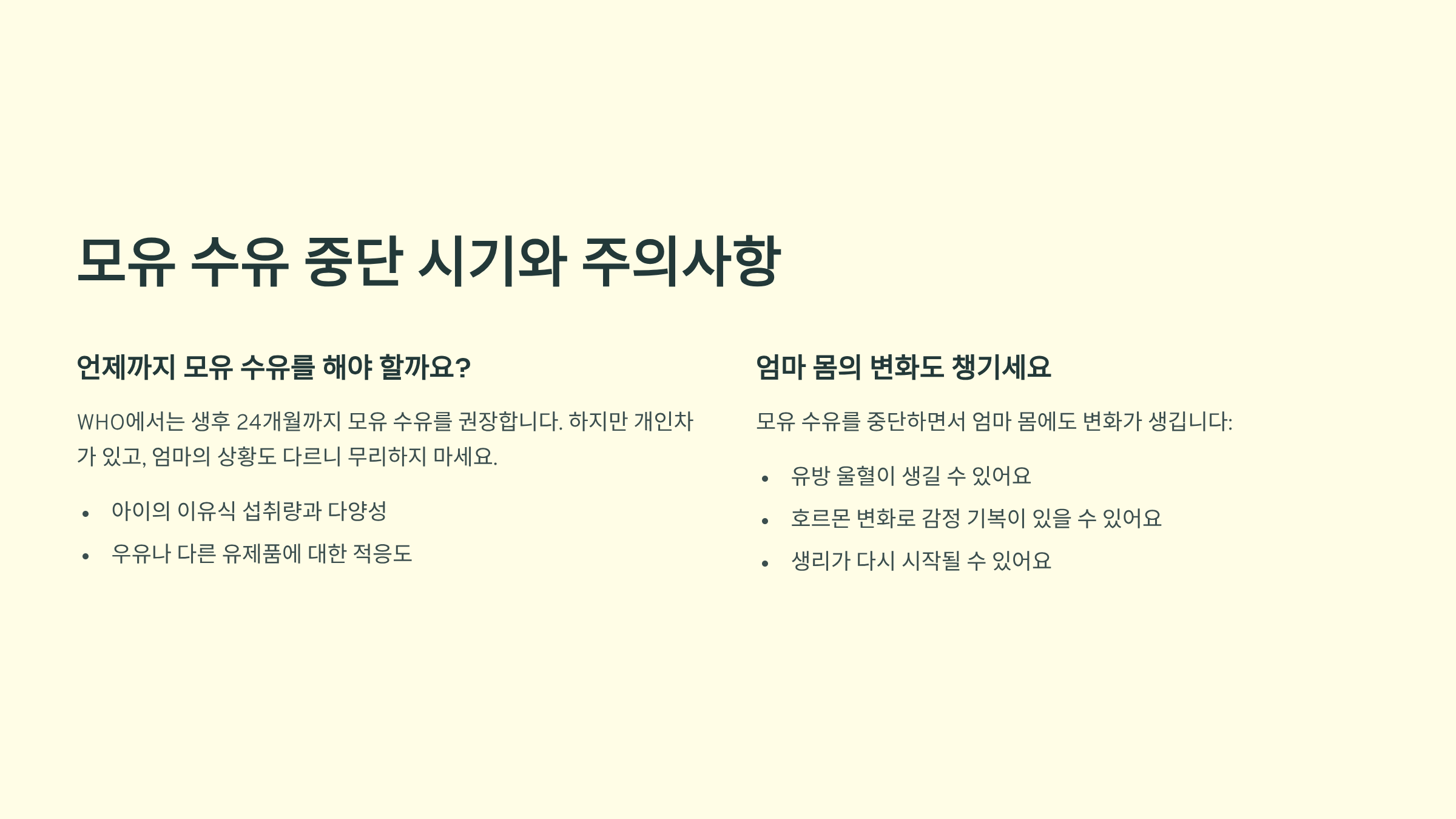 모유 수유 중단 시기를 결정할 때 고려할 점들: