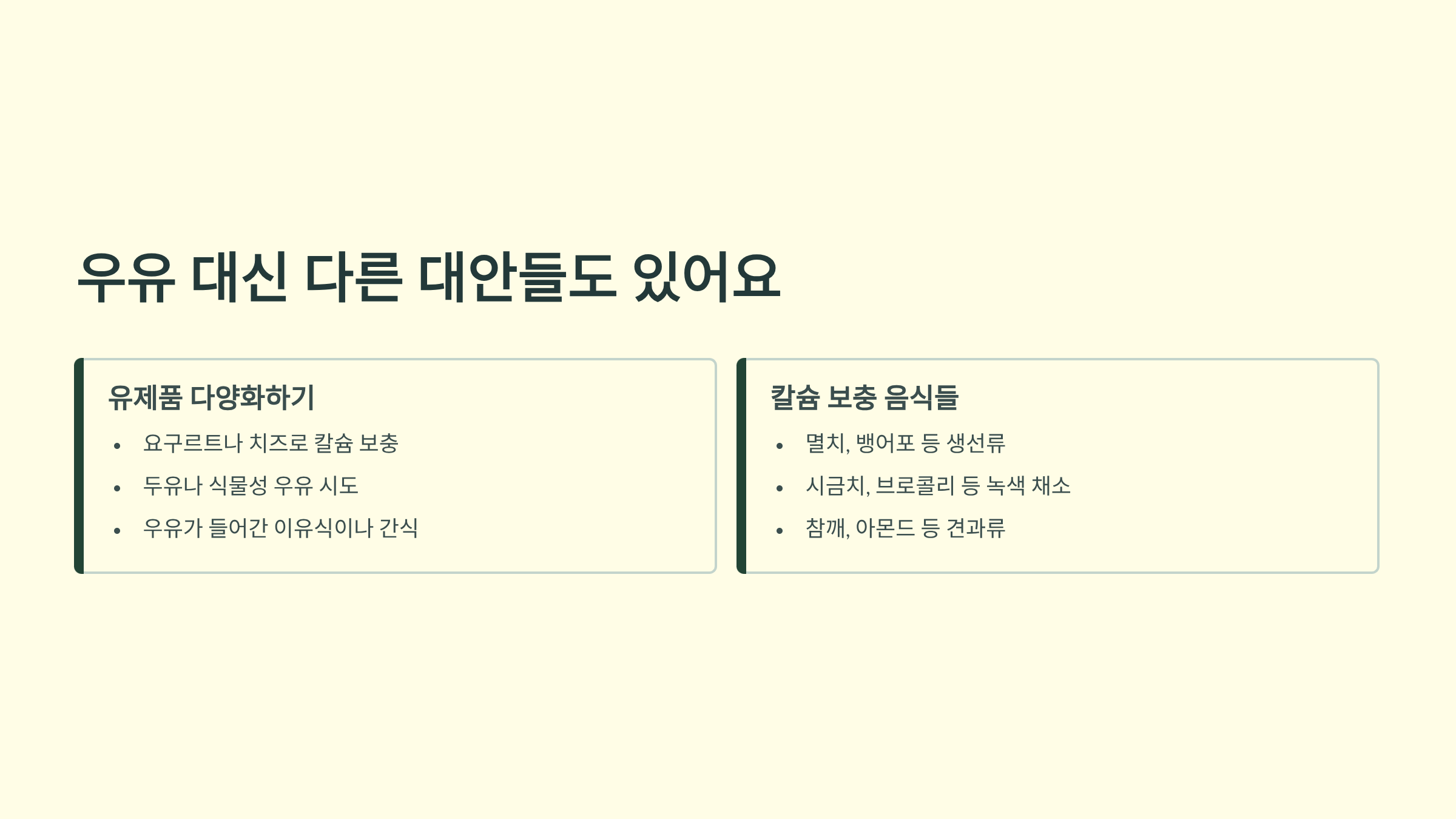 - 두유나 식물성 우유 시도 (단, 영양 성분 확인 필요)