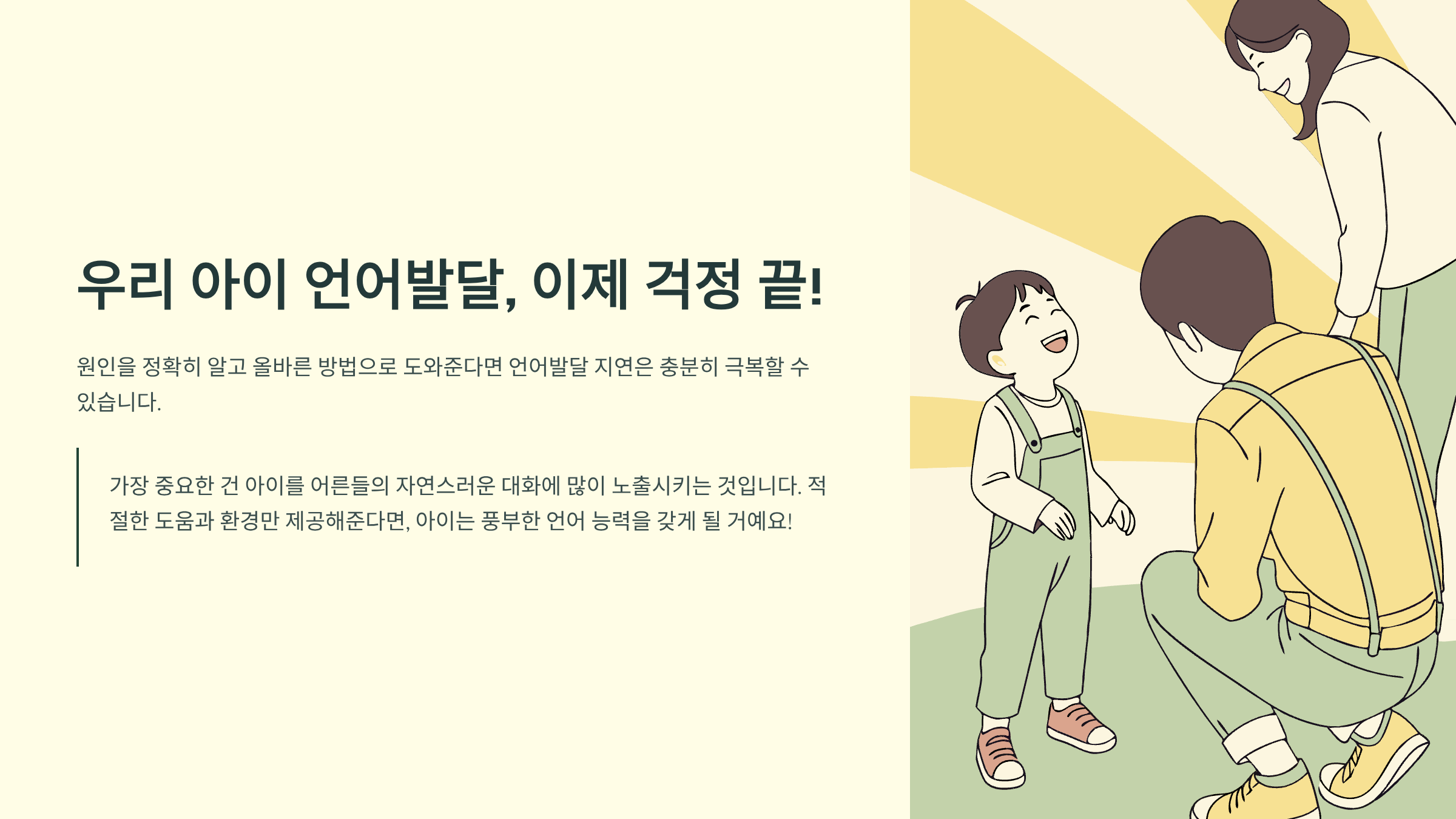 언어발달 지연은 요즘 많은 아이들이 겪는 문제예요. 하지만 원인을 정확히 알고 올바른 방법으로 도와준다면 충분히 극복할 수 있어요.