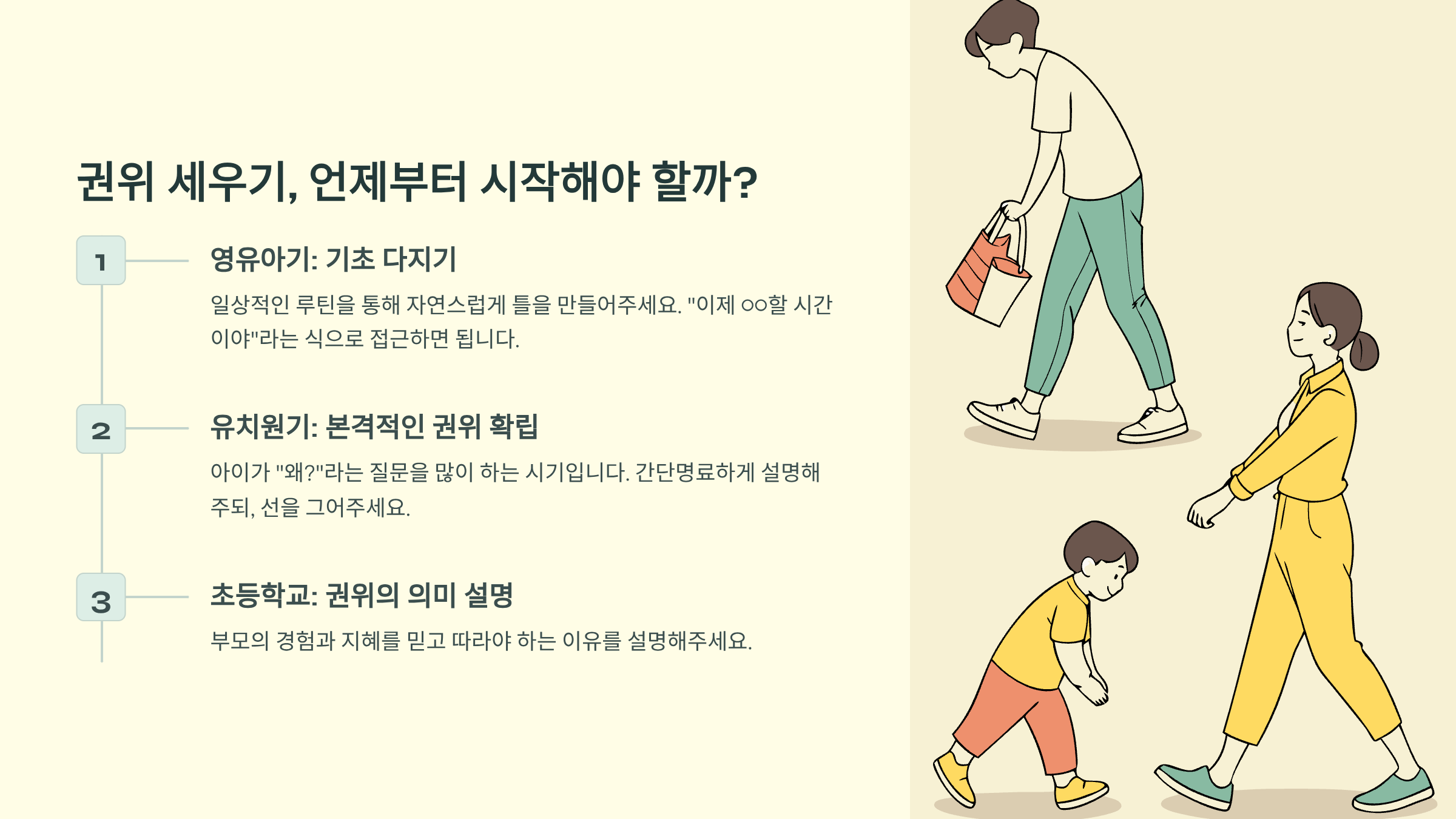 이 시기가 정말 중요해요. 아이가 "왜?"라는 질문을 많이 하고, 자기 주장도 강해지거든요. 이때 적절한 권위를 세우지 못하면 나중에 더 어려워져요.