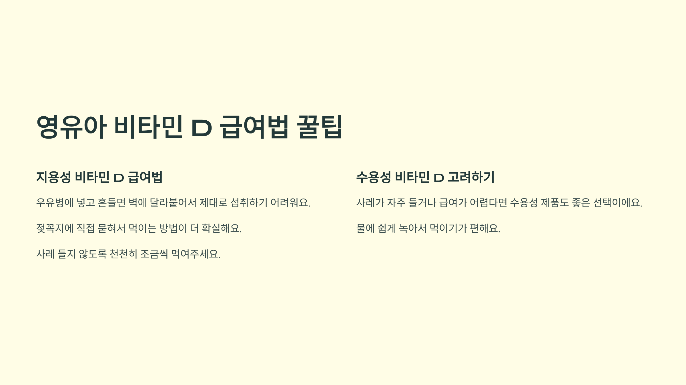 - 구루병 예방: 특히 성장기 아이들에게 필수적이에요