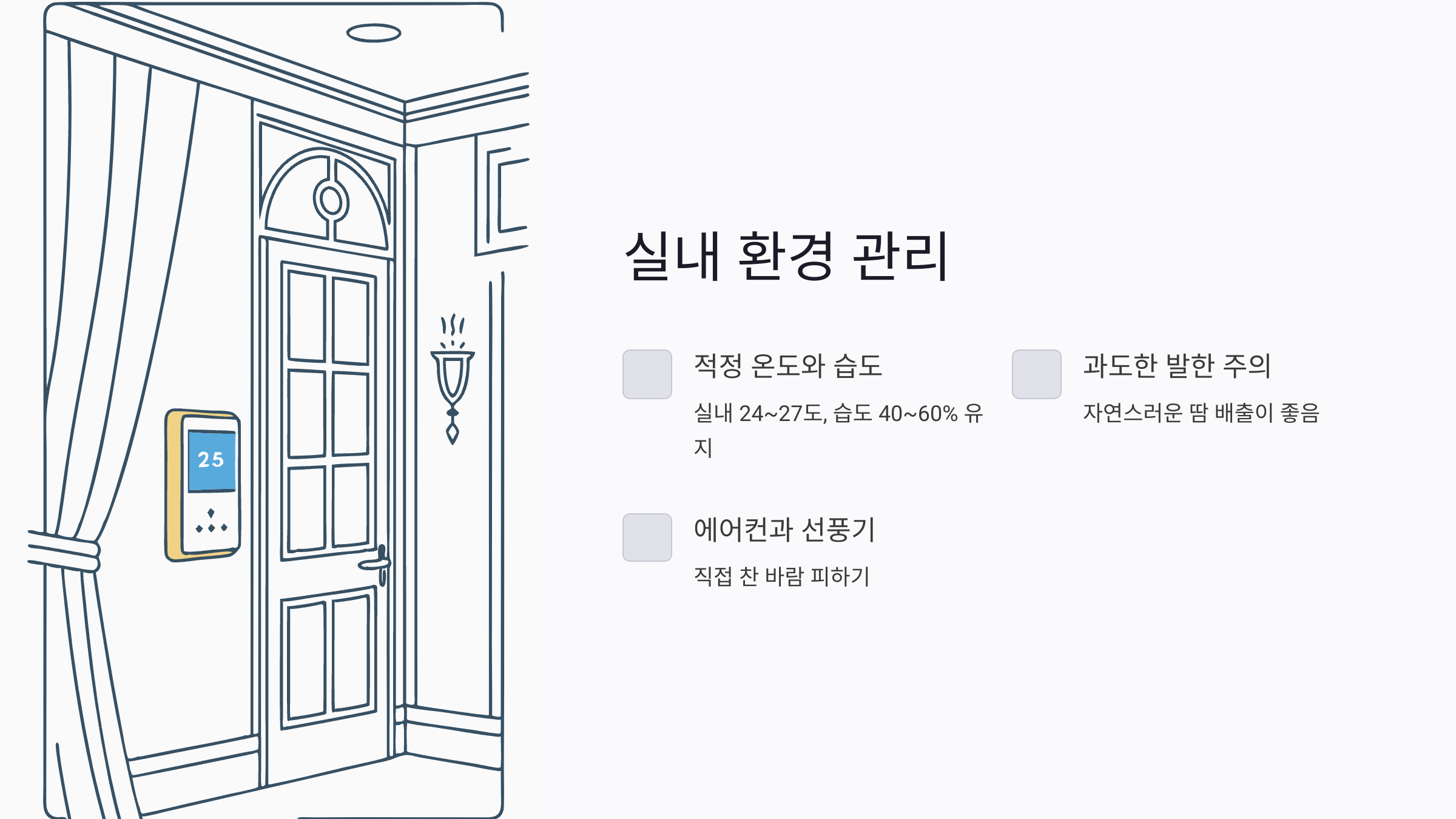 - 에어컨이나 선풍기 사용 시 직접적인 바람 피하기