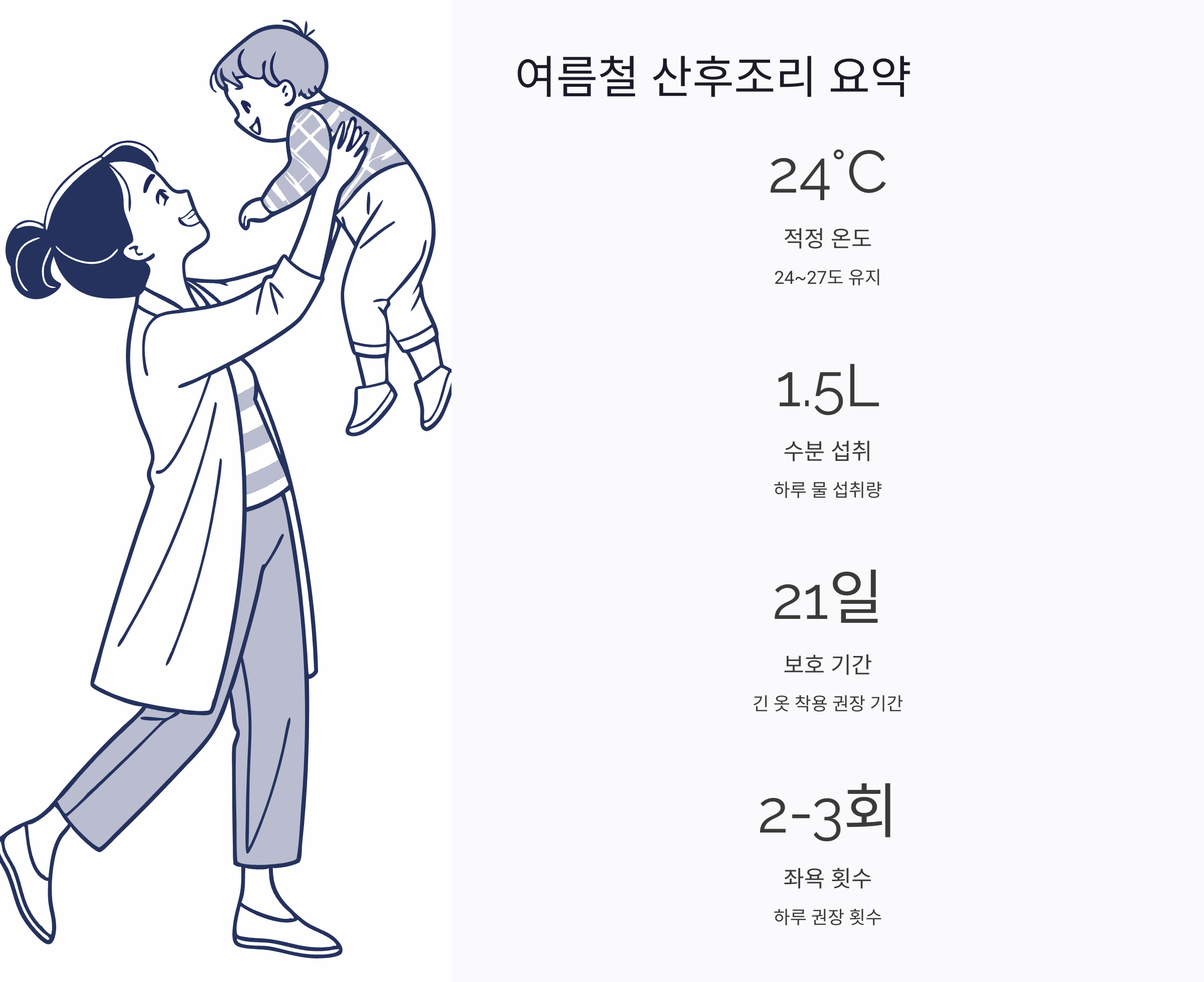 안녕하세요! 여름철에 출산을 앞두고 계신 예비 산모님들, 혹은 이미 더운 날씨에 출산을 경험하고 계신 분들이라면 "이 더위에 어떻게 산후조리를 해야 할까?"라는 고민이 크실 텐데요. 오늘은 여름철 산후조리에 대한 정보를 쉽고 자세하게 알려드리려고 합니다. 30도가 넘는 무더위에도 내복을 입고 보일러를 켜야 하냐는 질문부터, 여름철 산후조리의 모든 것을 살펴볼게요!
