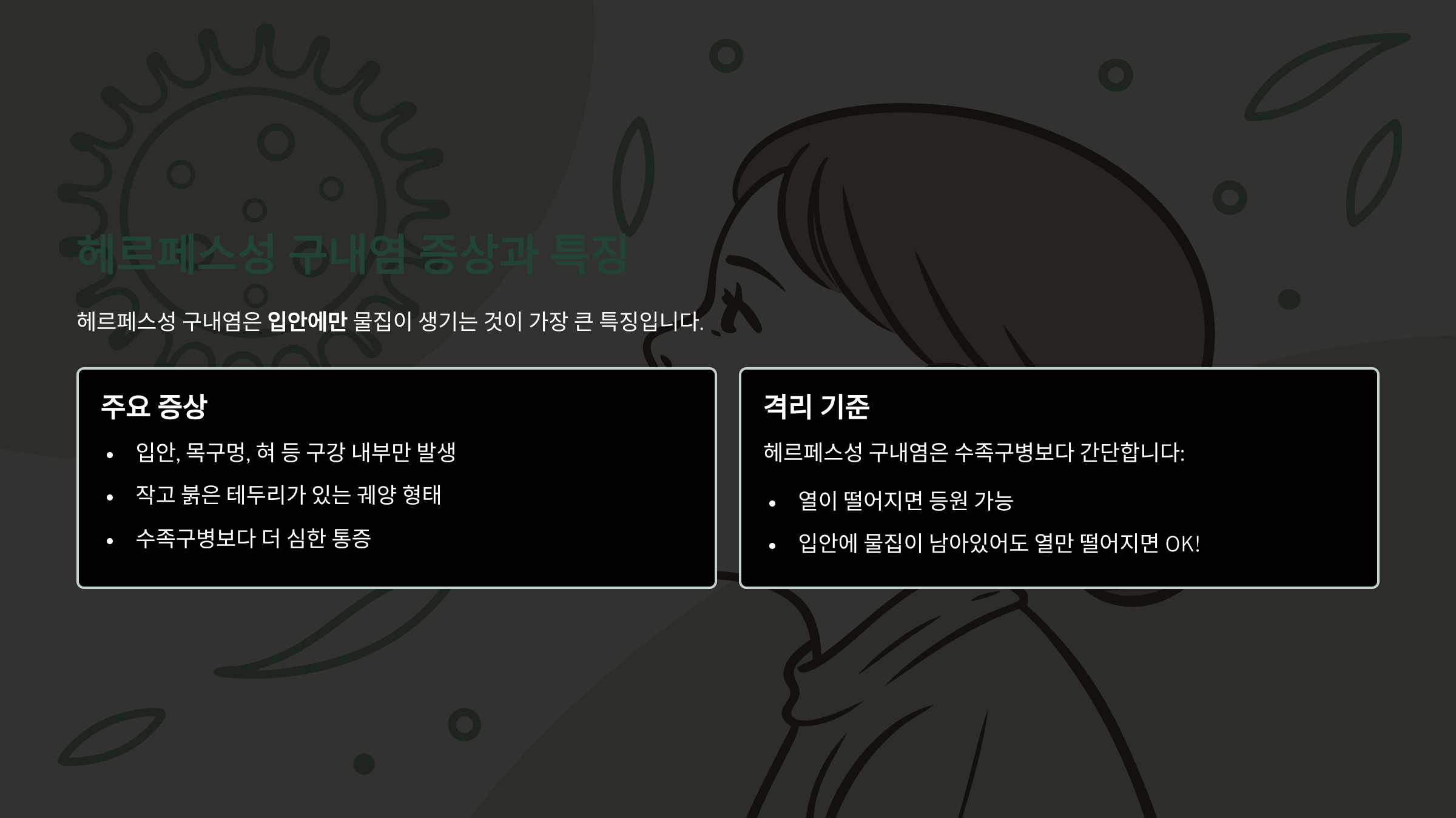 헤르페스성 구내염 증상과 특징 - 입안에만 집중하세요