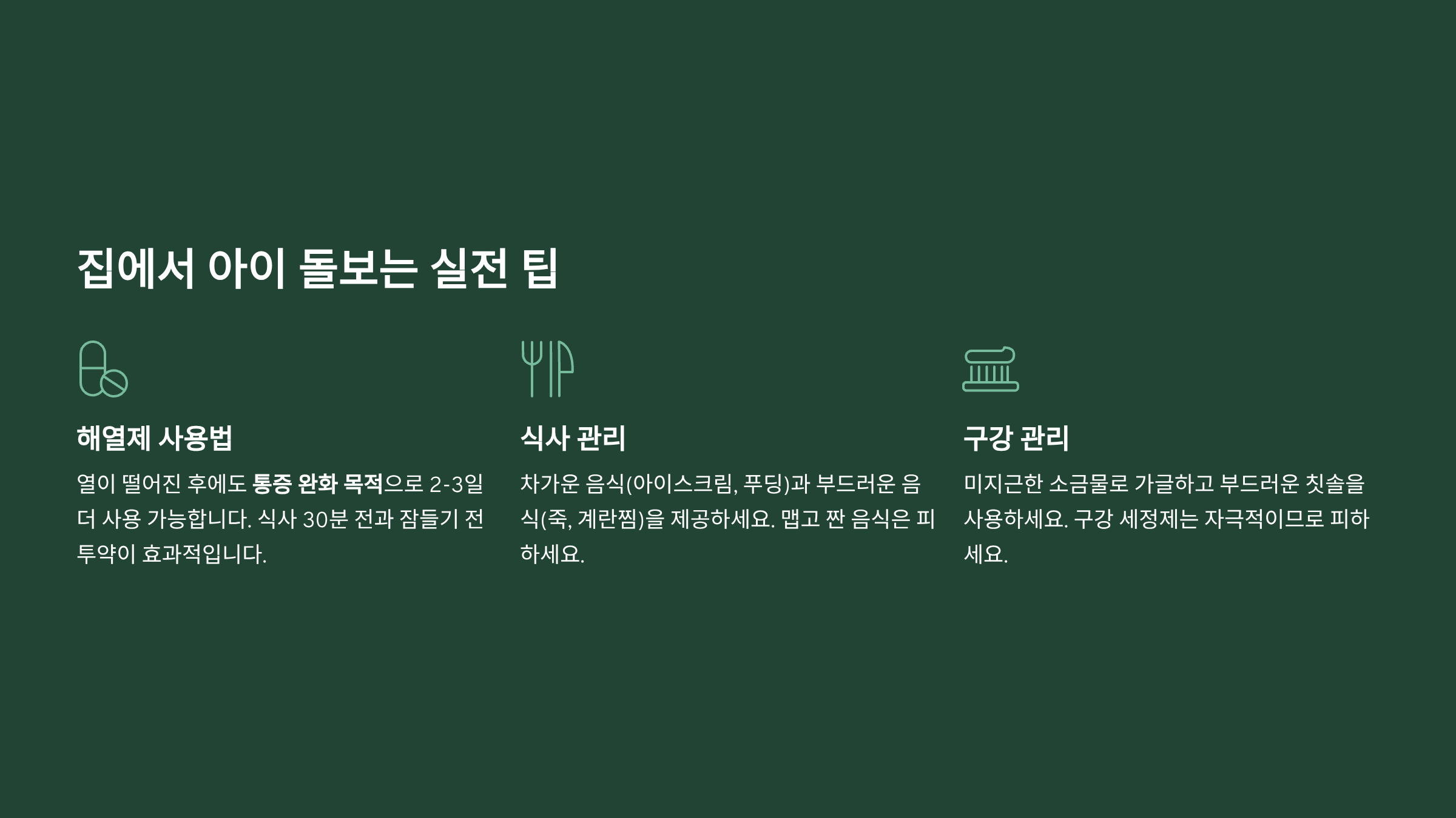 입안이 아파서 잘 먹지 못하는 아이들을 위한 식사 팁이에요: