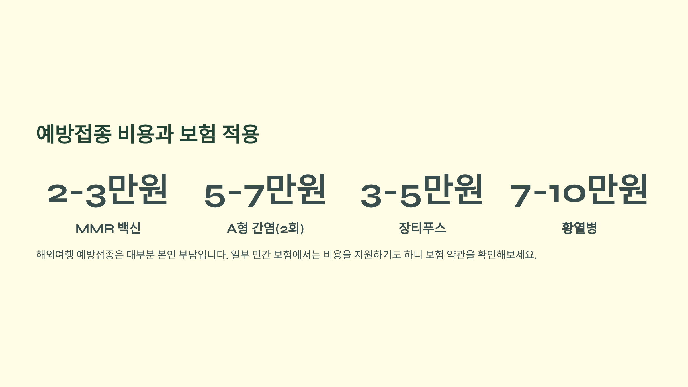 해외여행 예방접종은 대부분 본인 부담이에요. 하지만 건강을 생각하면 꼭 필요한 투자죠. 대략적인 비용을 알려드릴게요.