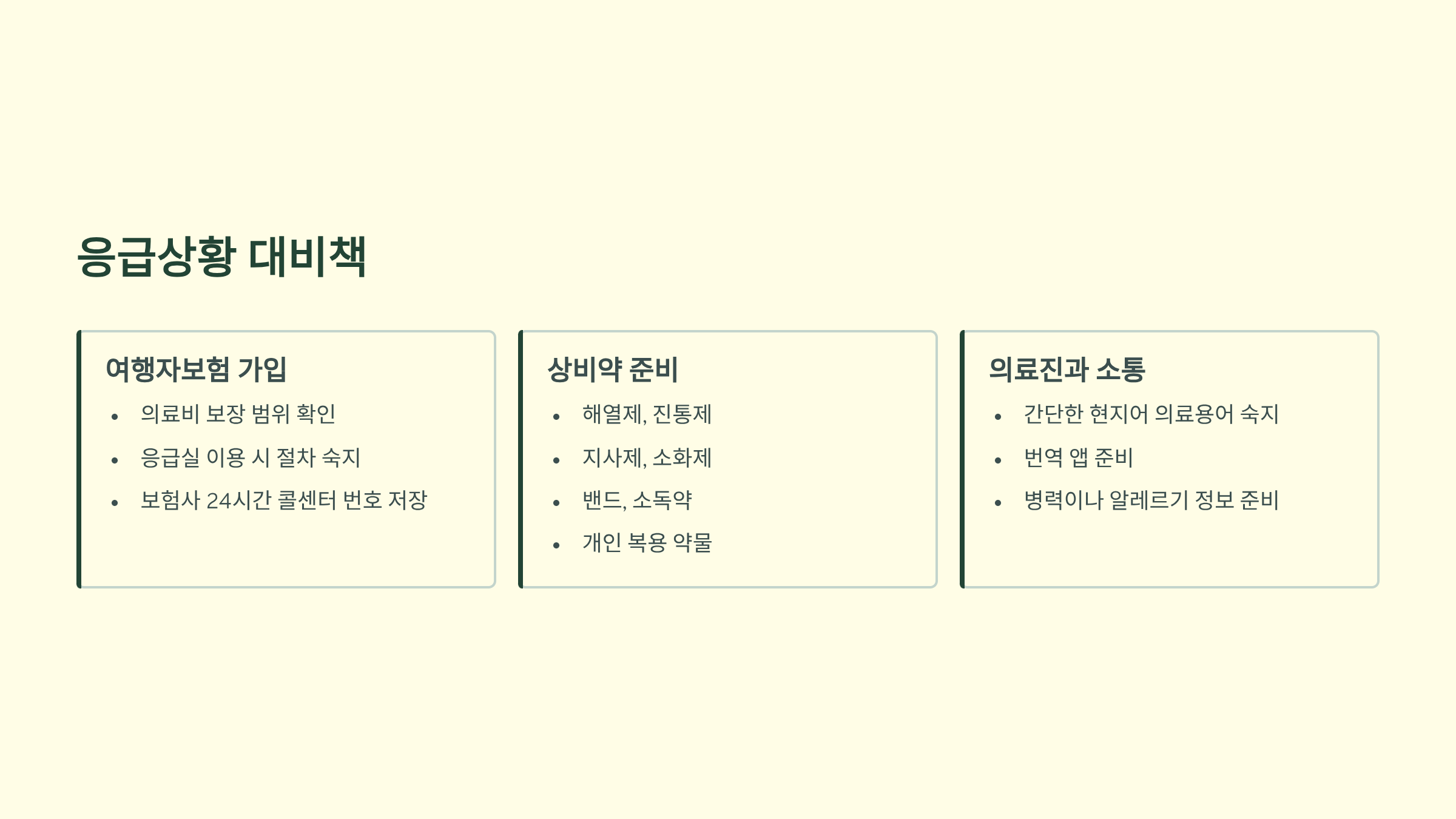해외에서 갑자기 아프면 정말 당황스럽죠. 미리 준비해두면 도움이 될 정보들을 알려드릴게요.
