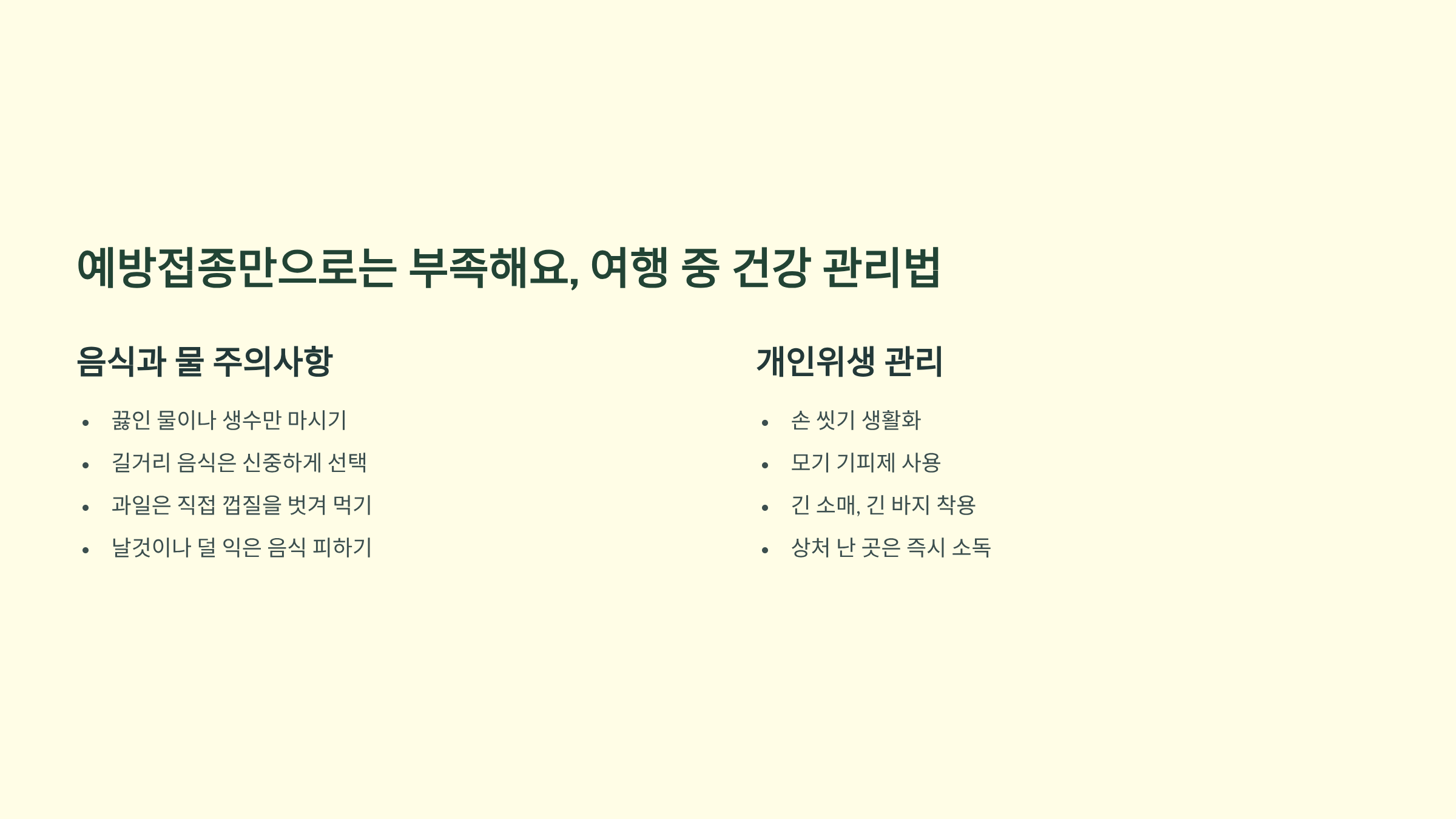예방접종만으로는 부족해요, 여행 중 건강 관리법