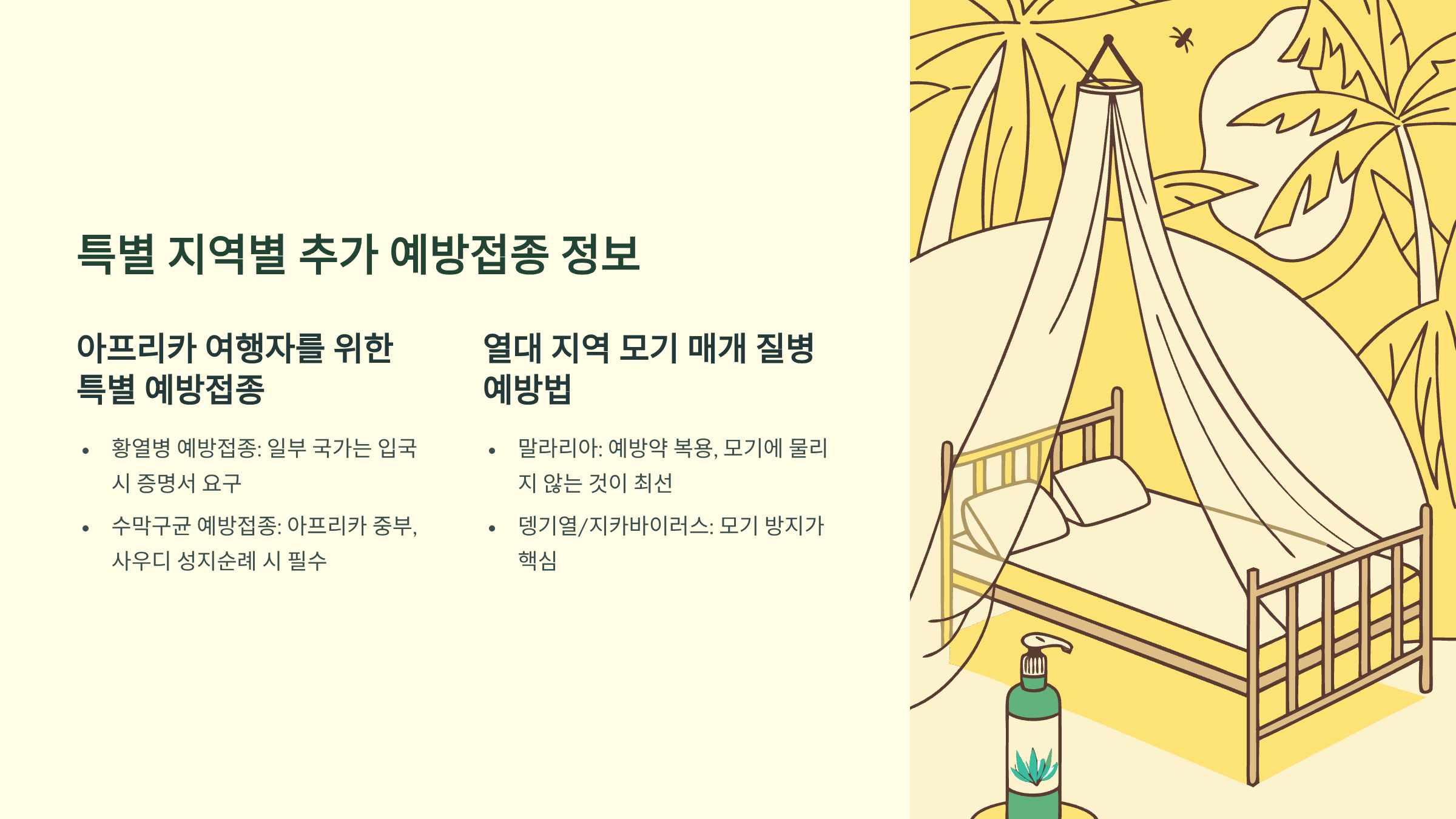 예방접종은 단순히 개인의 건강을 지키는 것뿐만 아니라, 여행 후 귀국했을 때 국내로 감염병이 유입되는 것을 막는 중요한 역할도 해요. 그래서 책임감 있는 여행자라면 꼭 챙겨야 할 필수 준비사항이죠.