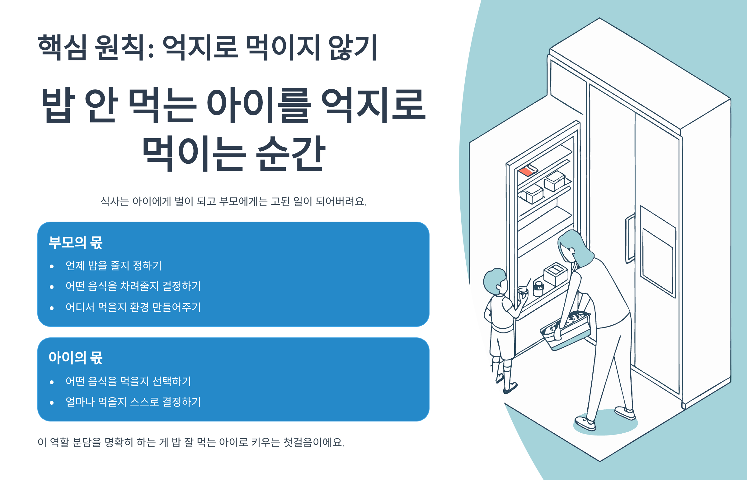 이 역할 분담을 명확히 하는 게 밥 잘 먹는 아이로 키우는 첫걸음이에요.