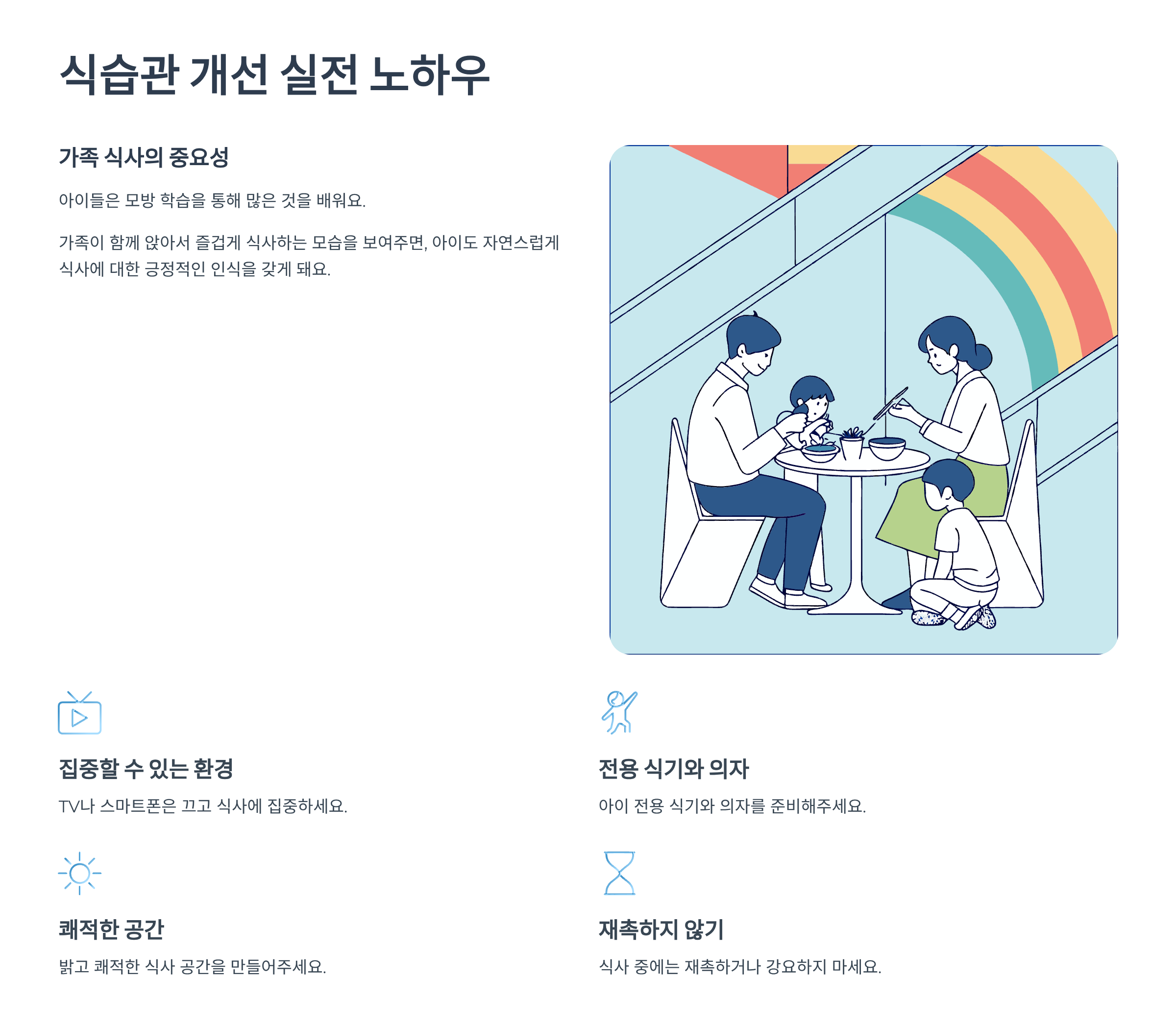 - 식사 중에는 재촉하거나 강요하지 않기