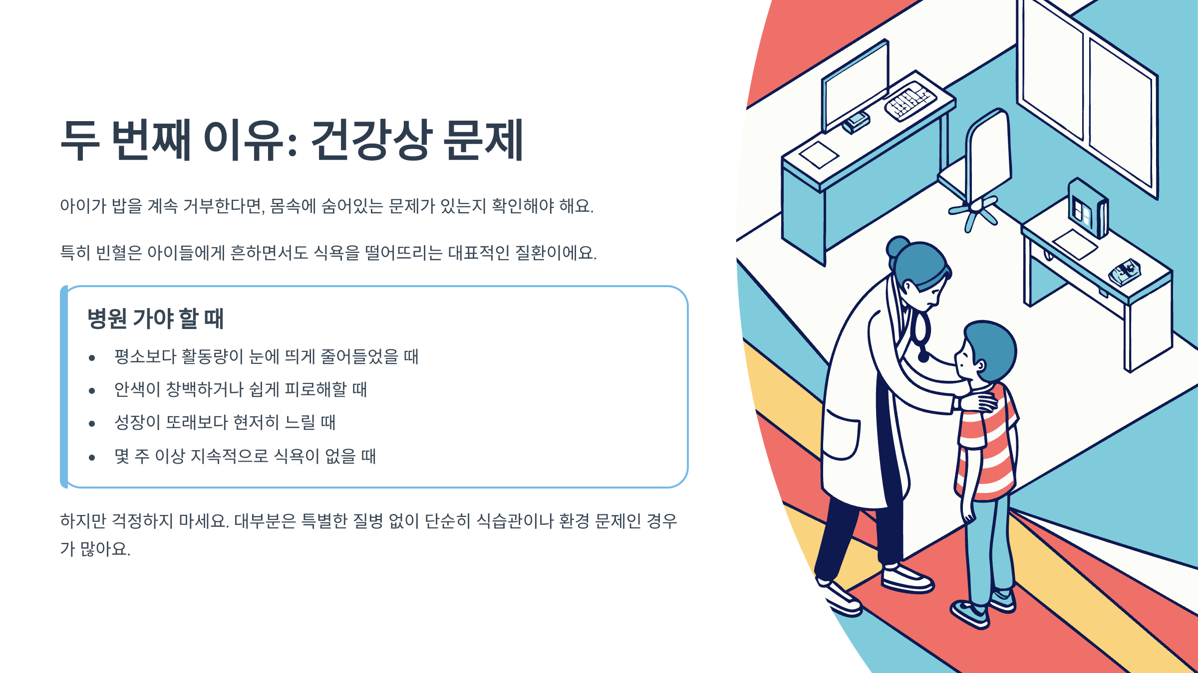 아이가 밥을 계속 거부한다면, 혹시 몸속에 숨어있는 문제가 있는지 확인해 봐야 해요. 특히 빈혈은 아이들에게 흔하면서도 식욕을 떨어뜨리는 대표적인 질환이거든요.