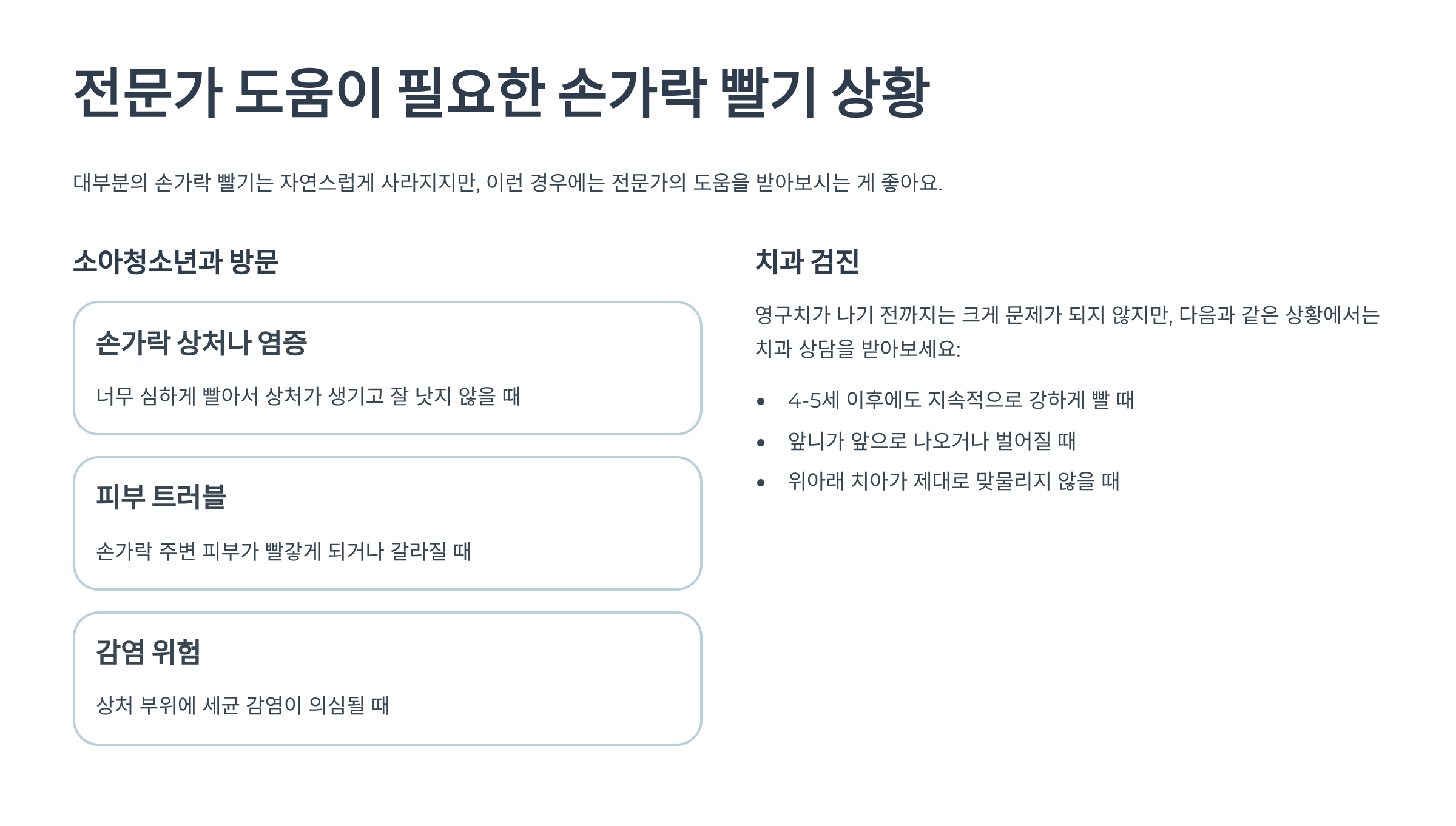 대부분의 손가락 빨기는 자연스럽게 사라지지만, 이런 경우에는 전문가의 도움을 받아보시는 게 좋아요.