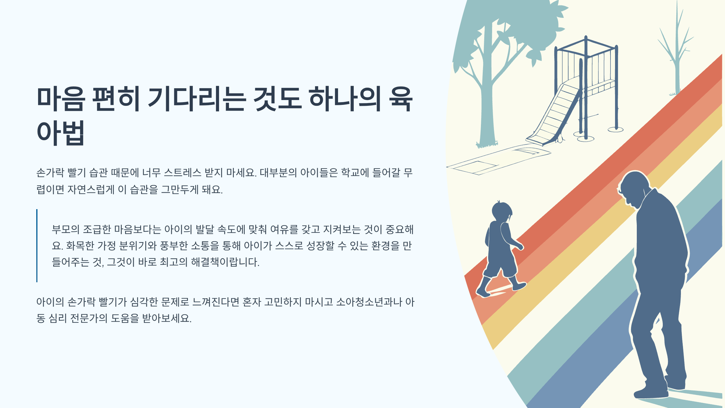 아이의 손가락 빨기가 심각한 문제로 느껴진다면 혼자 고민하지 마시고 소아청소년과나 아동 심리 전문가의 도움을 받아보세요. 전문가의 조언을 통해 우리 아이에게 맞는 최적의 해결책을 찾을 수 있을 거예요.
