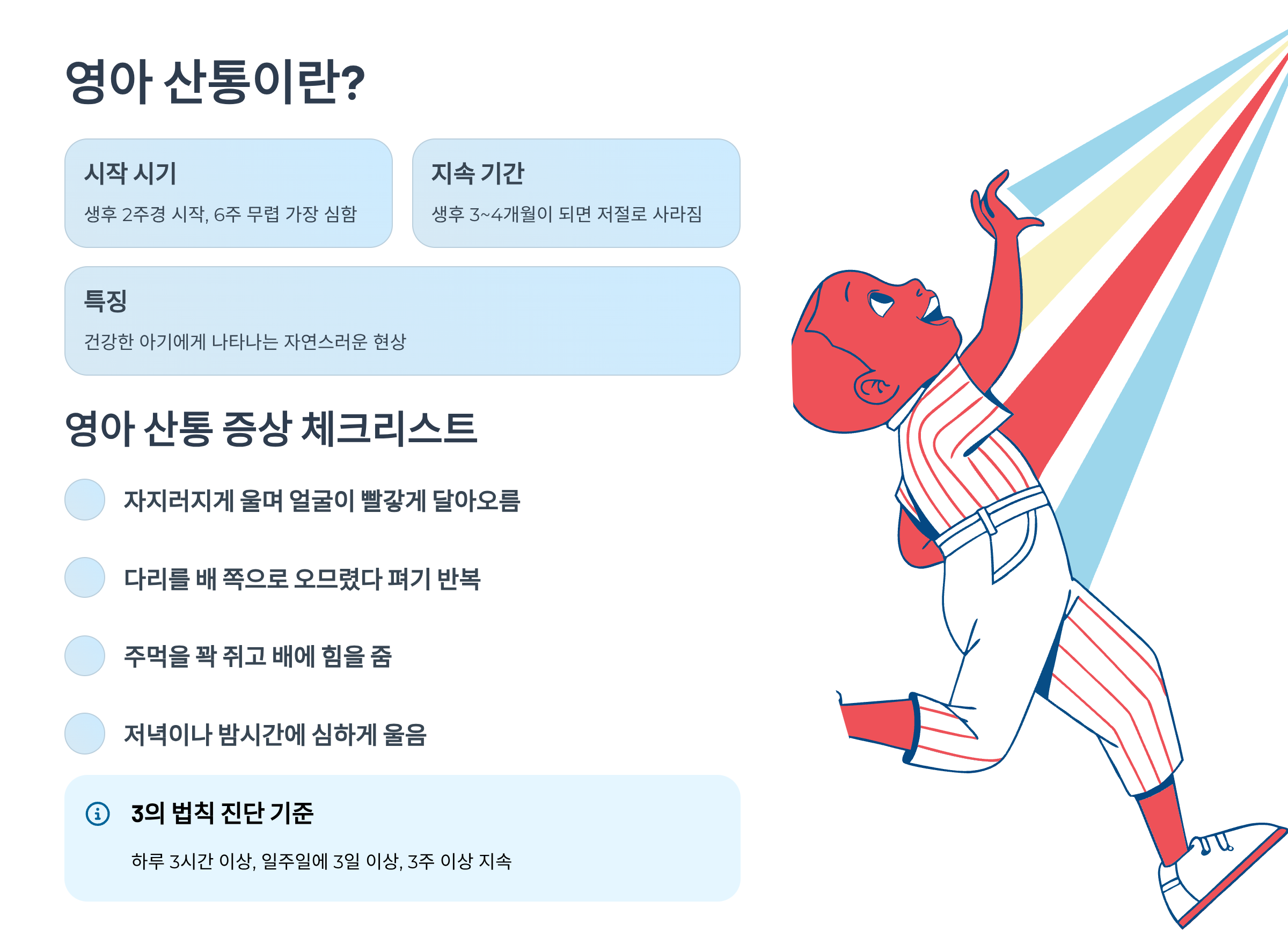 이 기준에 해당한다면 영아 산통으로 볼 수 있어요.