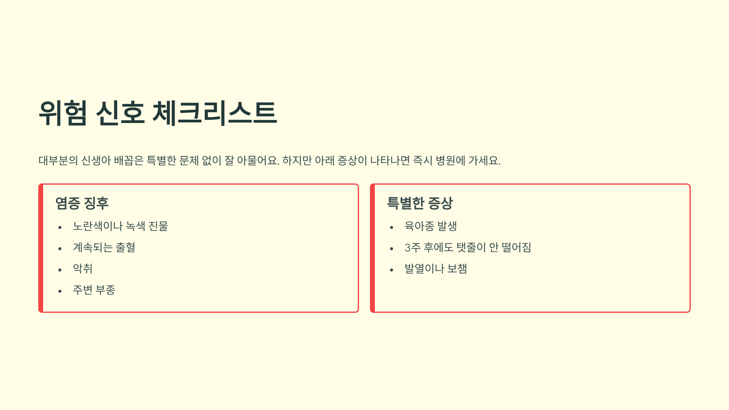 위험 신호를 알아보는 신생아 배꼽 관리 체크리스트