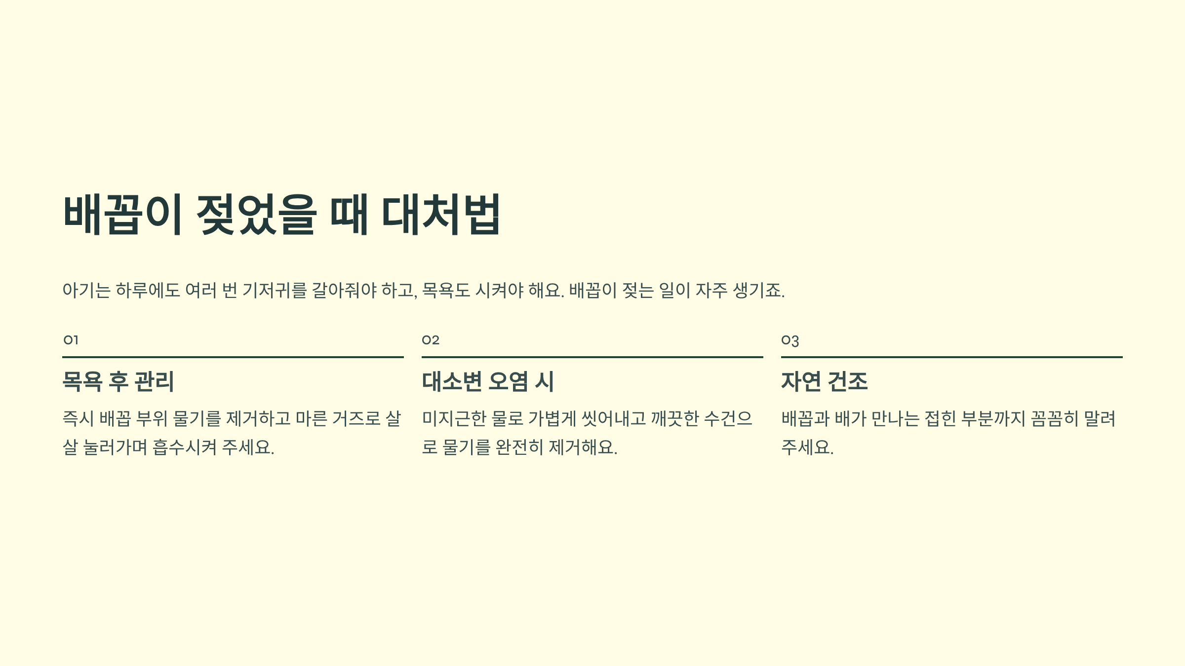 - 목욕이 끝나면 즉시 배꼽 부위 물기를 제거해요