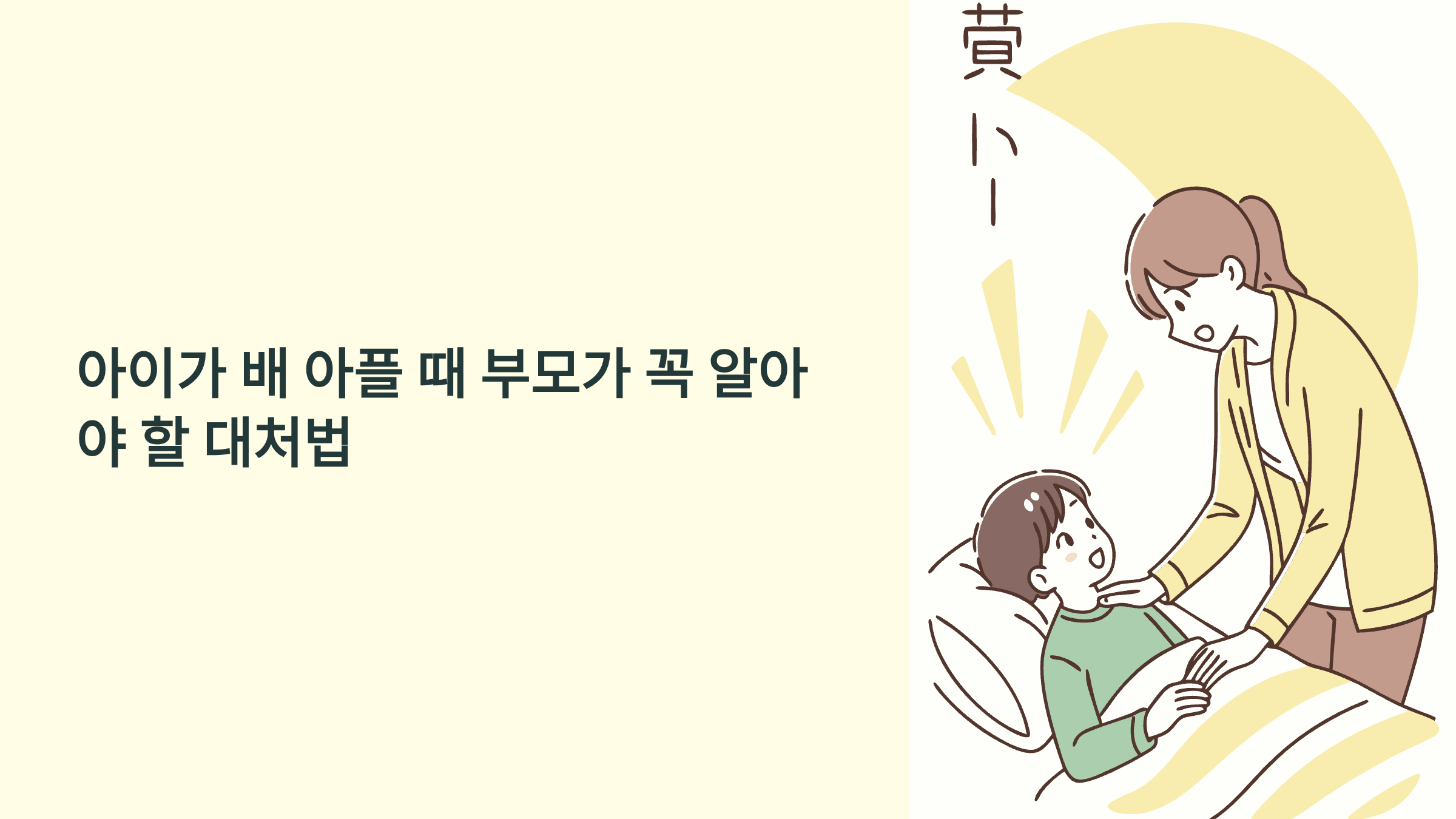안녕하세요! 오늘은 많은 부모님들이 당황하게 되는 상황 중 하나인 '아이 복통'에 대해 자세히 알아보려고 해요. 아이가 갑자기 배가 아프다고 하면 어떻게 해야 할지 막막하죠? 특히 밤늦은 시간이나 주말이라면 더욱 그렇고요.