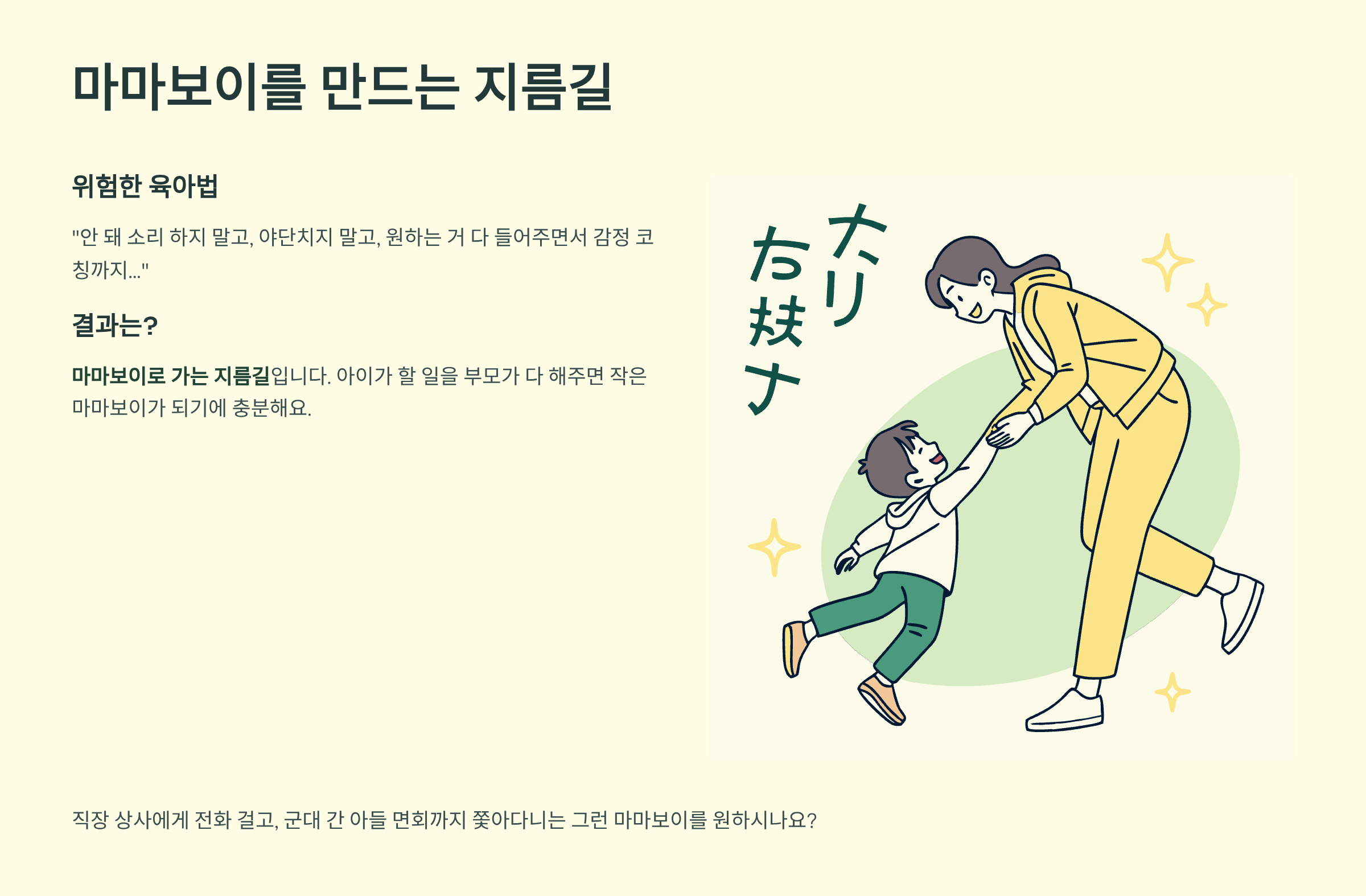 "내가 안 해주면 아이가 그걸 못 하고, 내가 안 하면 아이에게 큰 문제가 생길 것 같다"고 생각하시죠?