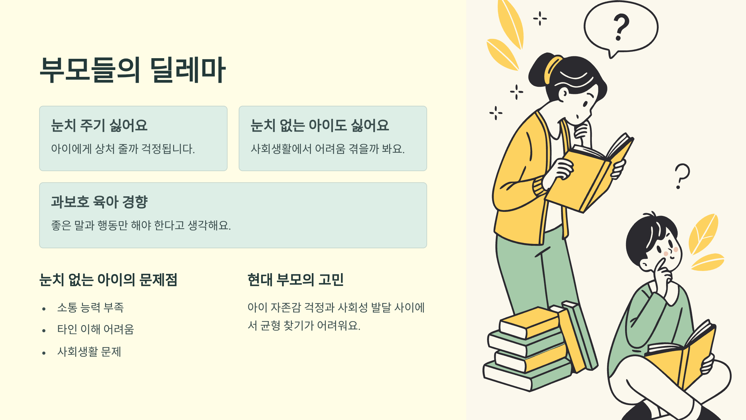 하지만 아이가 눈치 없이 자라는 것의 문제점도 분명히 알고 계시잖아요: