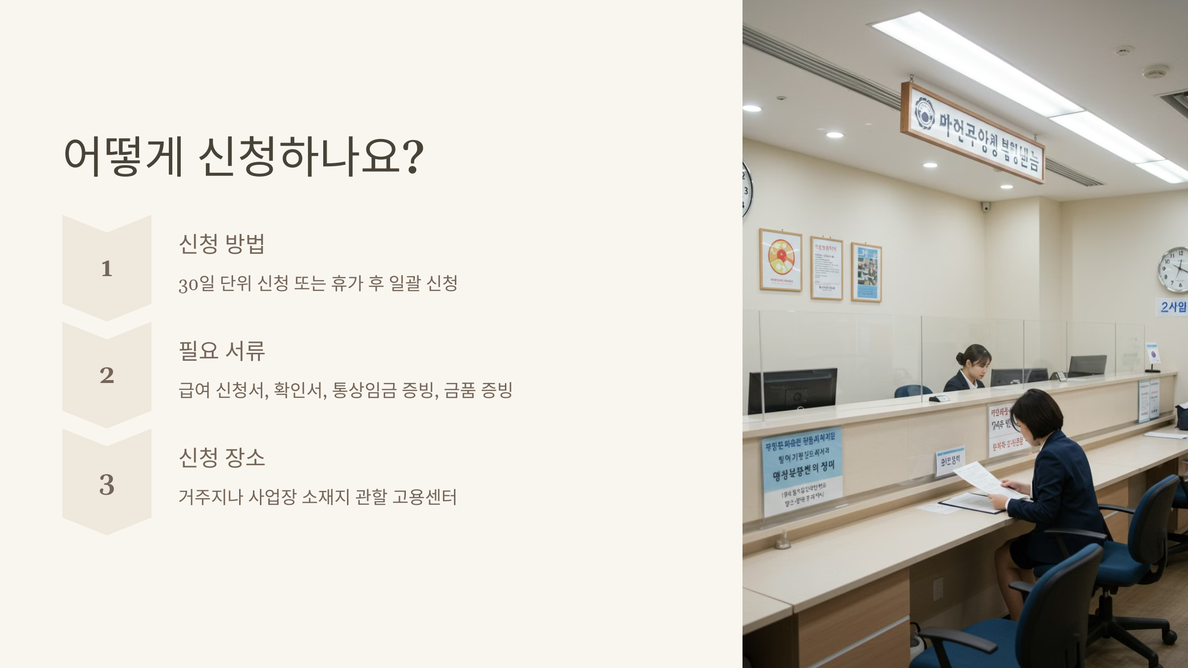 신청 장소: 거주지나 사업장 소재지 관할 고용센터