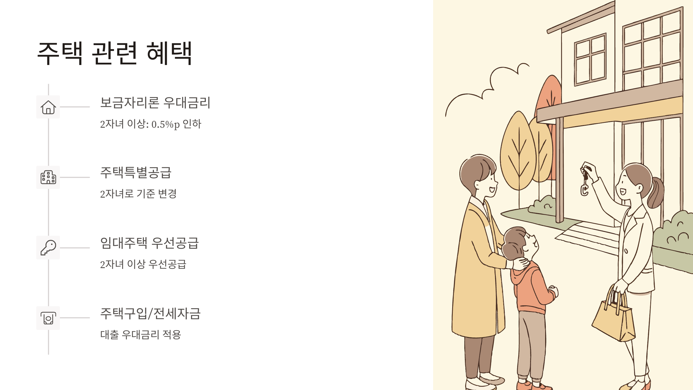 - 2자녀 이상 가구: 대출 우대금리 적용