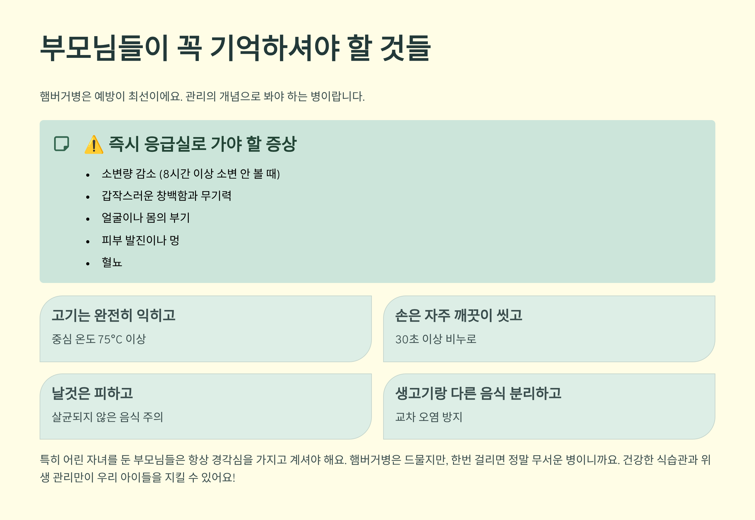 특히 어린 자녀를 둔 부모님들은 항상 경각심을 가지고 계셔야 해요. 햄버거병은 드물지만, 한번 걸리면 정말 무서운 병이니까요.