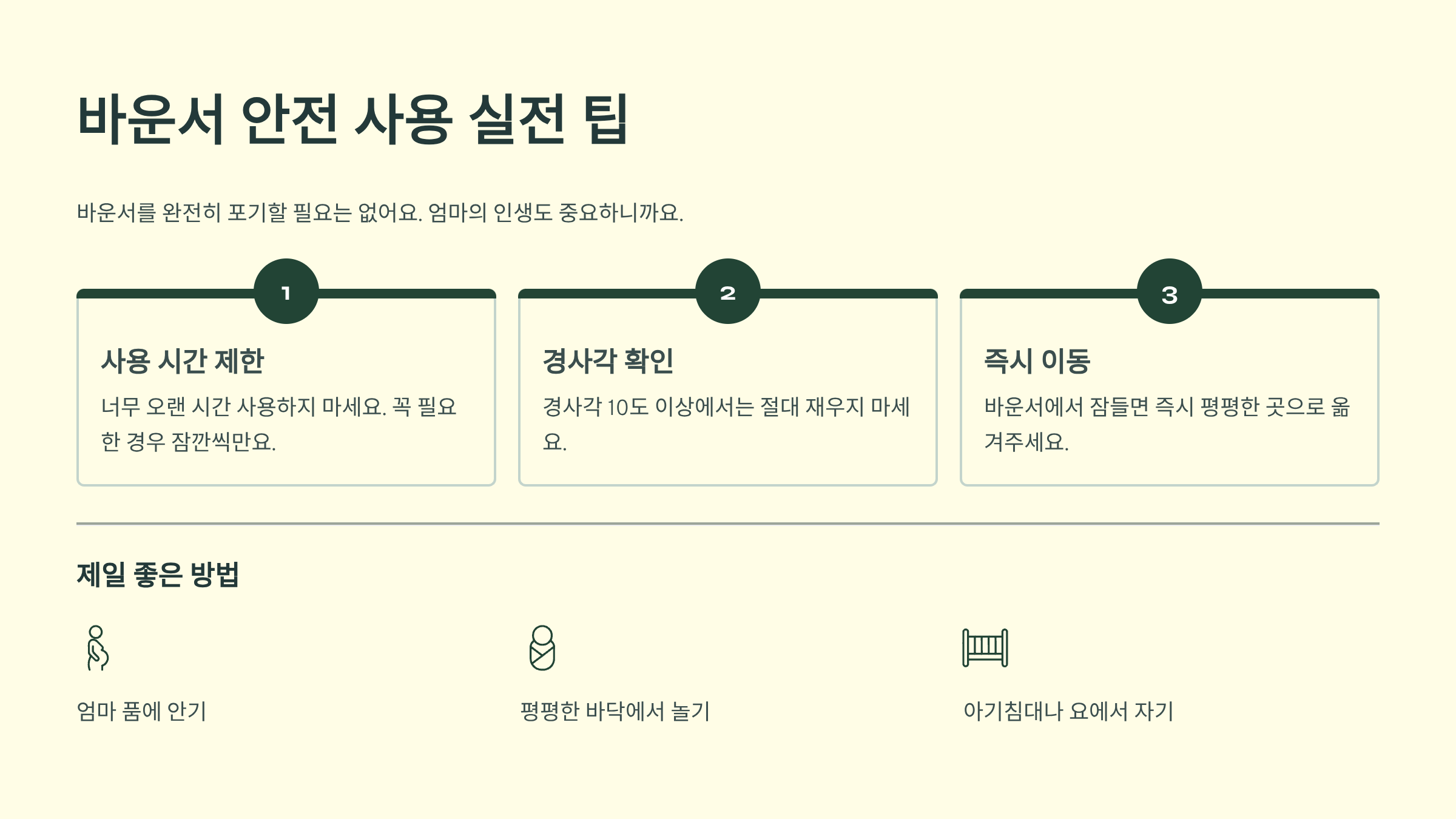 바운서를 완전히 포기할 필요는 없어요. 엄마의 인생도 중요하니까요. 다만 이렇게 사용하시면 안전해요: