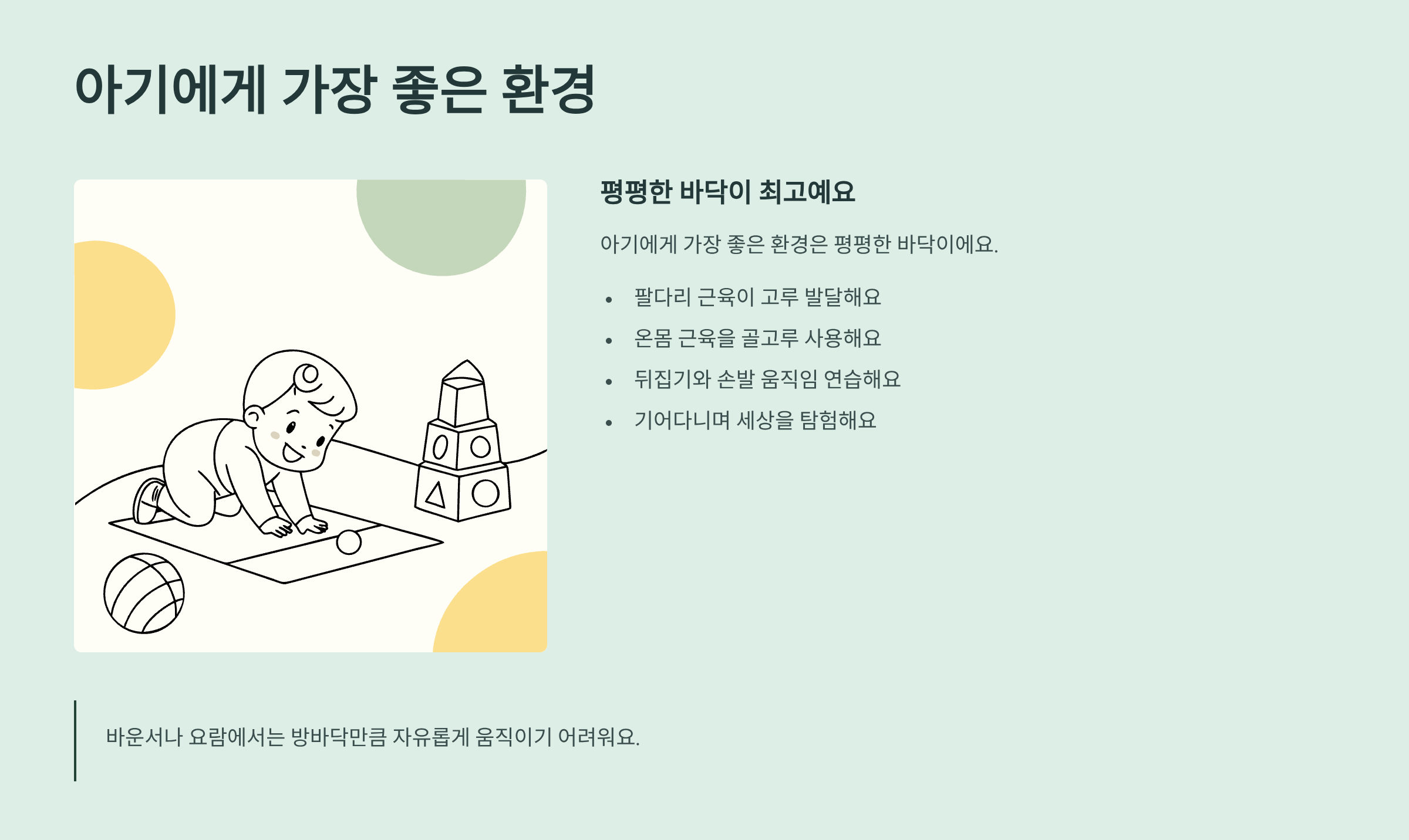 솔직히 말씀드리면, 아기에게 가장 좋은 환경은 평평한 바닥이에요.