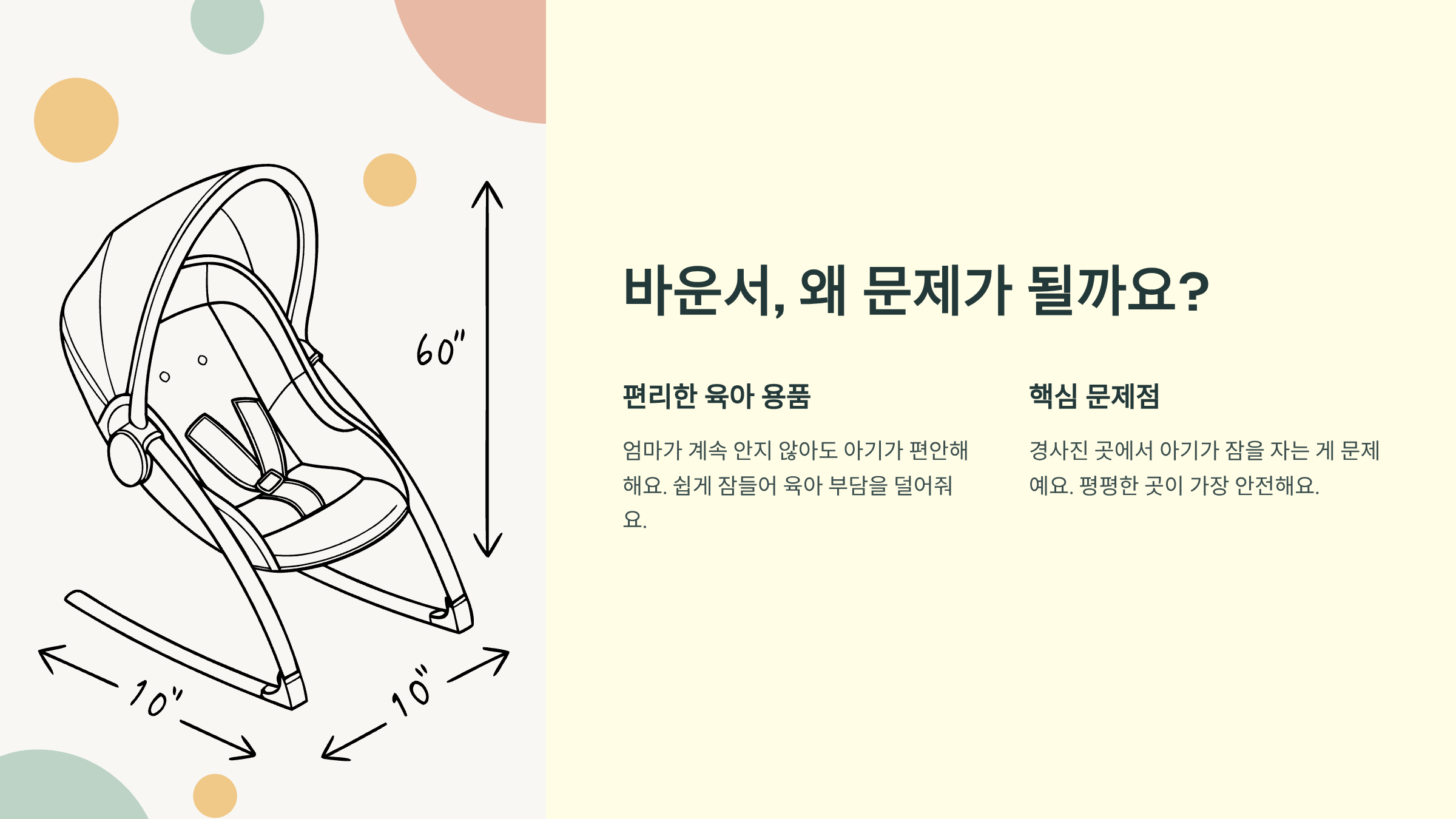 작년에 미국 소비자 보호단체에서 바운서 사용 경고가 나왔고, 최근에는 한국소비자원에서도 비슷한 경고를 하면서 많은 부모님들이 불안해하시는 것 같아요. 오늘은 바운서와 흔들 요람 같은 아기 용품, 제대로 알고 안전하게 사용하는 방법에 대해 자세히 알려드릴게요.