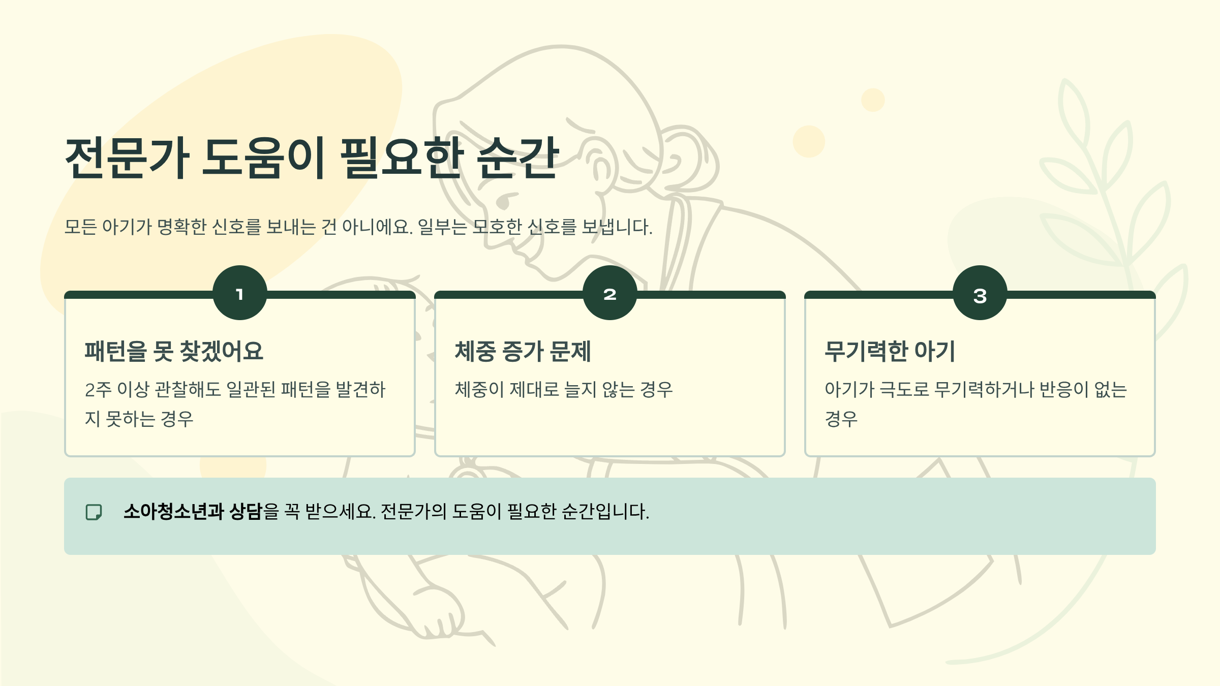 "할 수 있다"는 확신을 가지고 시작하세요. 의심과 불안은 관찰력을 흐리게 만들지만, 신뢰와 여유는 아기의 미묘한 신호도 포착할 수 있게 해줘요.
