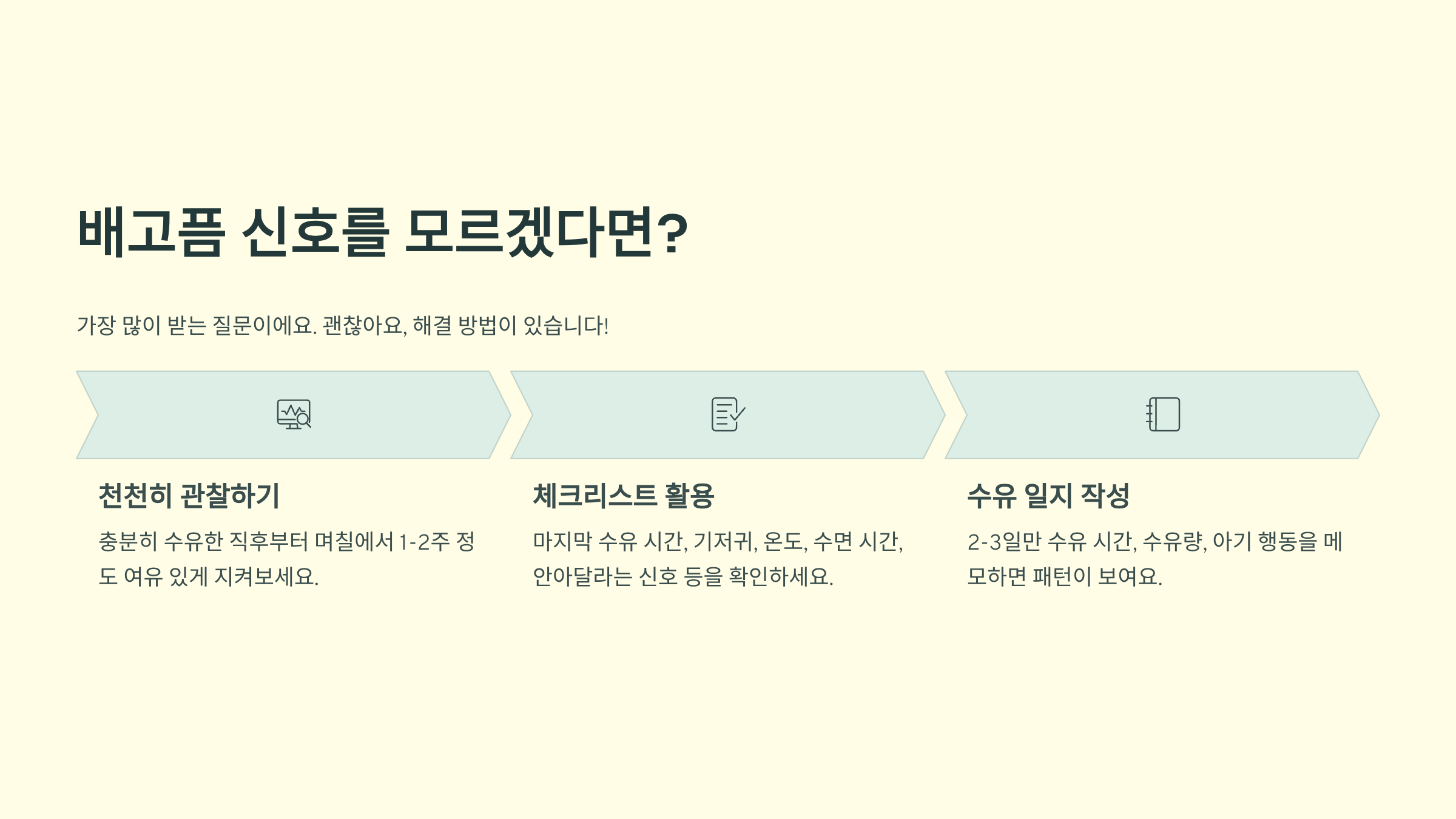 2-3일만 수유 시간, 수유량, 아기 행동을 간단히 메모해보세요. 패턴이 보이기 시작할 거예요.
