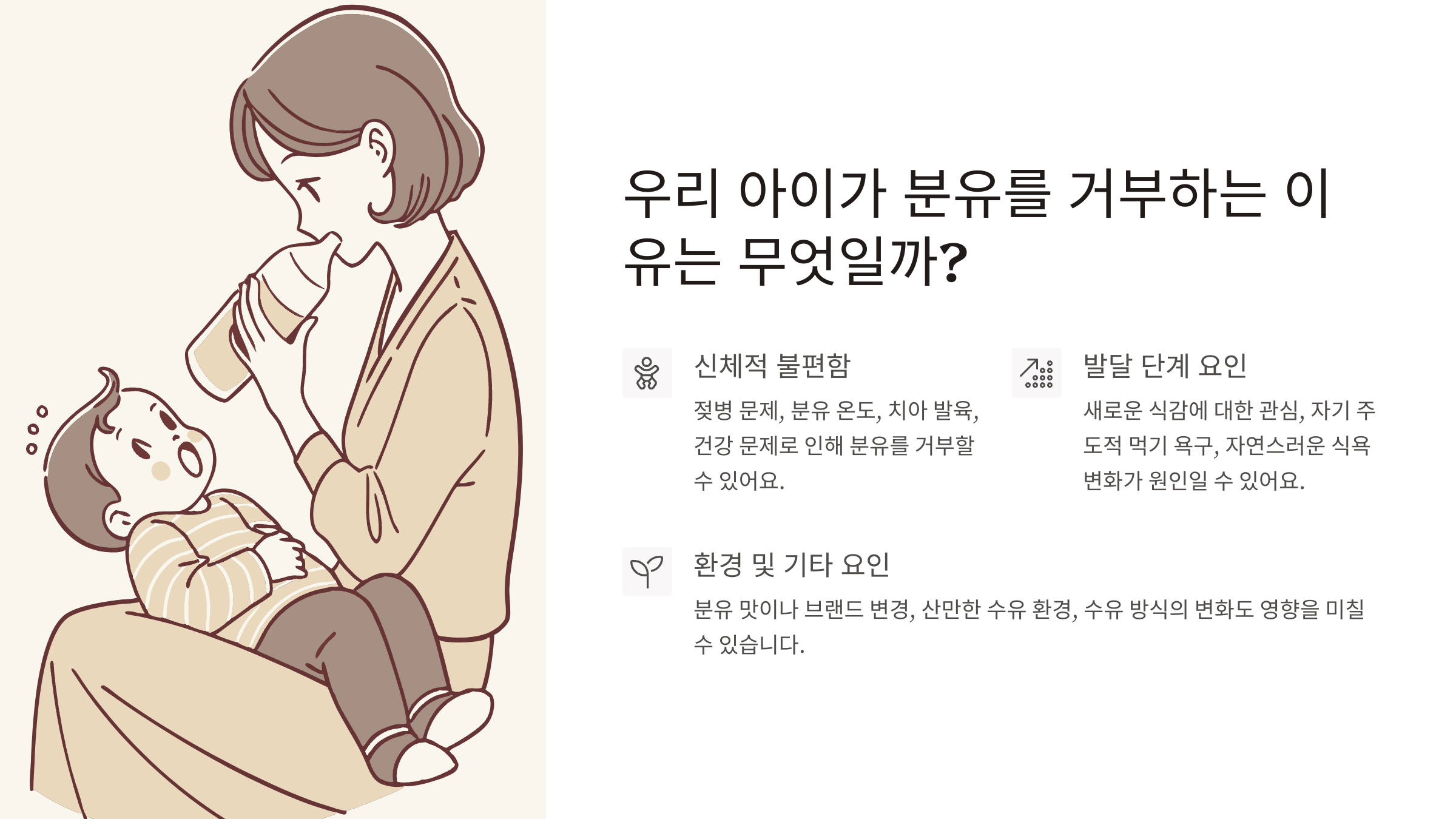 아기의 성장 과정에서 자연스럽게 나타나는 변화도 분유 거부의 원인이 될 수 있어요.