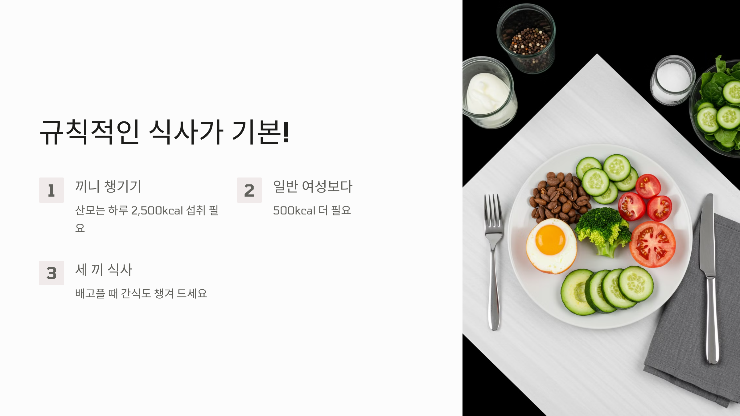 아기 케어하느라 끼니 거르기 일쑤인 산모님들! 그래도 규칙적인 식사는 정말 중요해요.